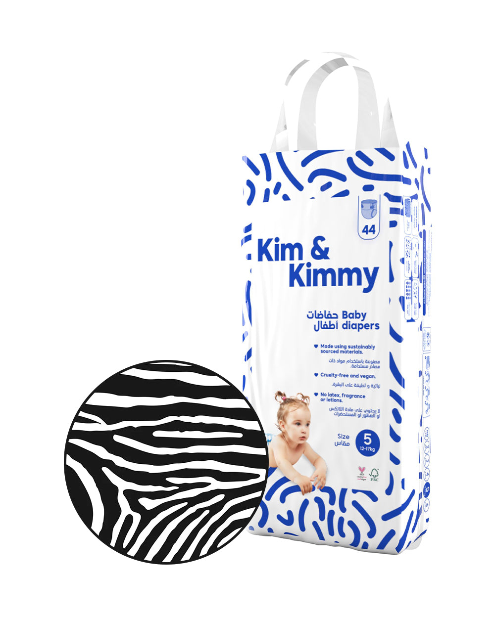 Kim & Kimmy Zebra Taped Diapers-Size 5 (12-17Kg)-With Wetness Indicator