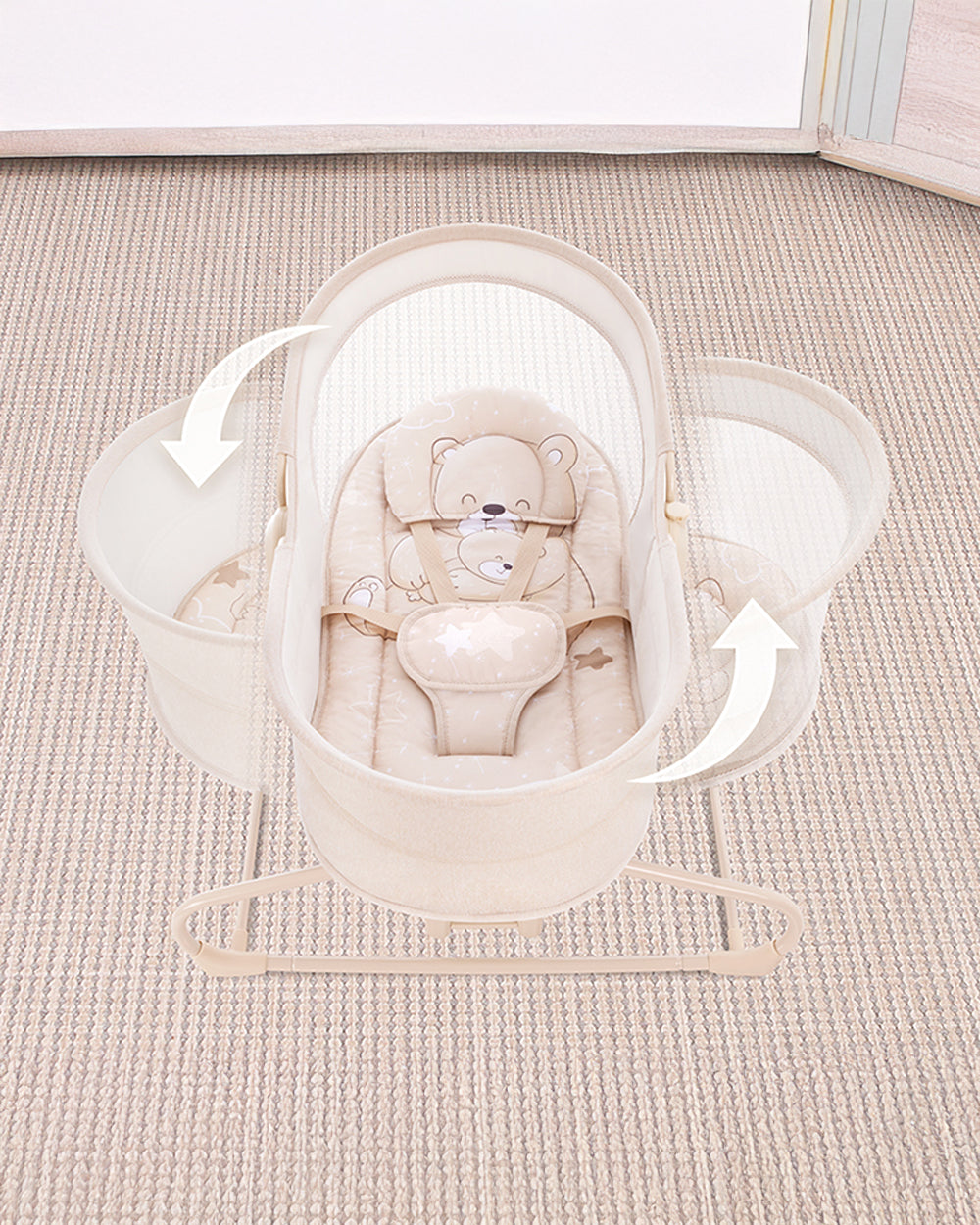 • 360° Rotating Cradle: Choose between side-to-side or back-and-forth movement to soothe your baby, or fix the cradle in place for stationary use.