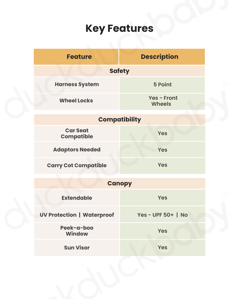 • UPF 50+ Canopy: The extendable sun canopy provides excellent UV protection while the see-through ventilation window keeps your baby cool and comfortable.