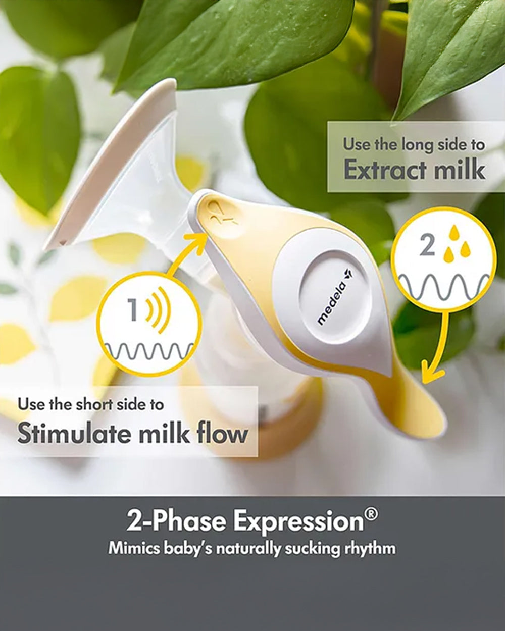 • Ergonomic Handle: Designed to provide comfort during pumping sessions, the ergonomic handle helps reduce hand fatigue and ensures a smoother, more efficient pumping experience.To fully benefit from handle’s functionality, first use the short side at a fast pace to stimulate milk flow. After you see breast milk flowing, use the long side of the handle to extract your milk.