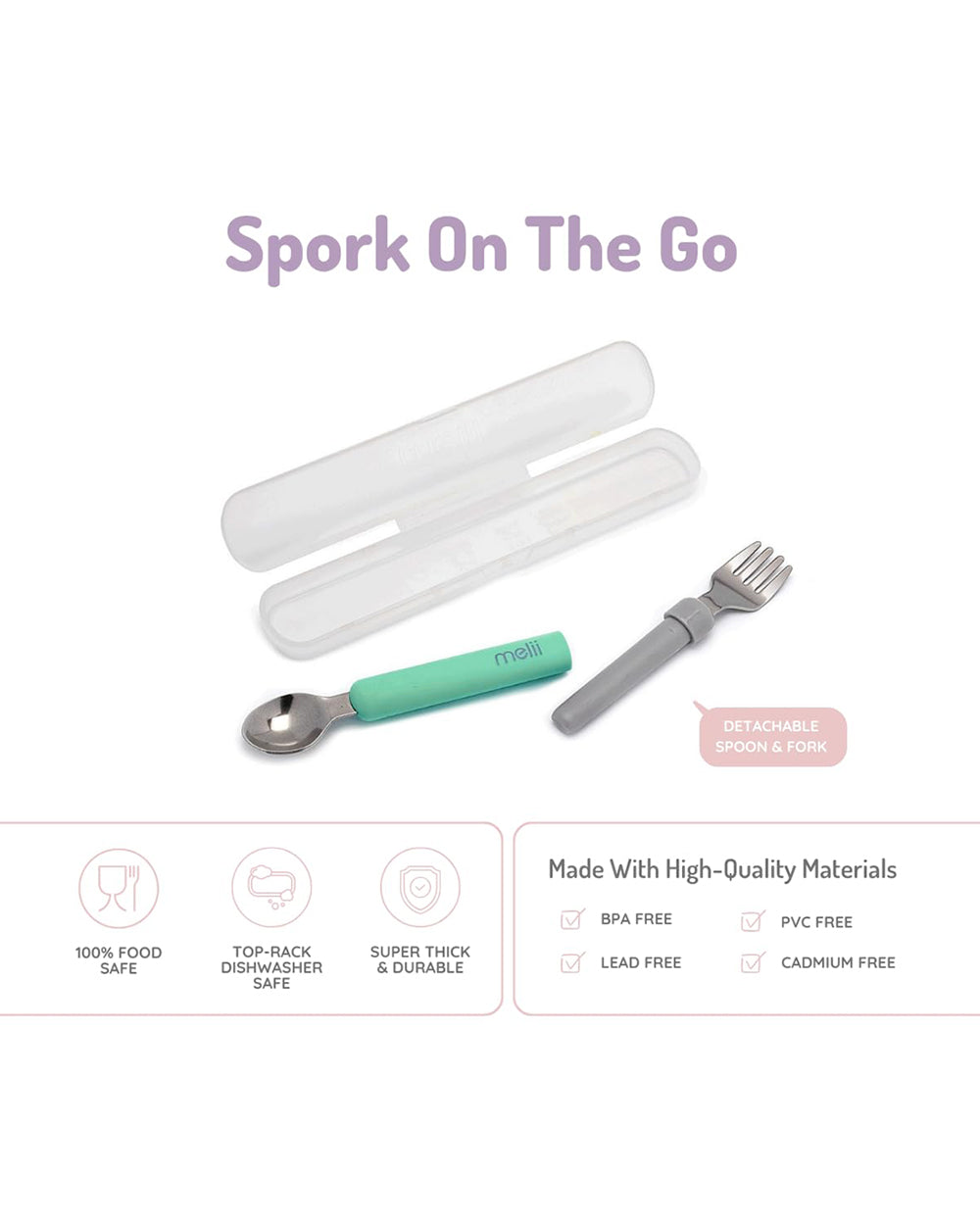 • Versatile Design: Use as a combined spork or detach into a separate spoon and fork