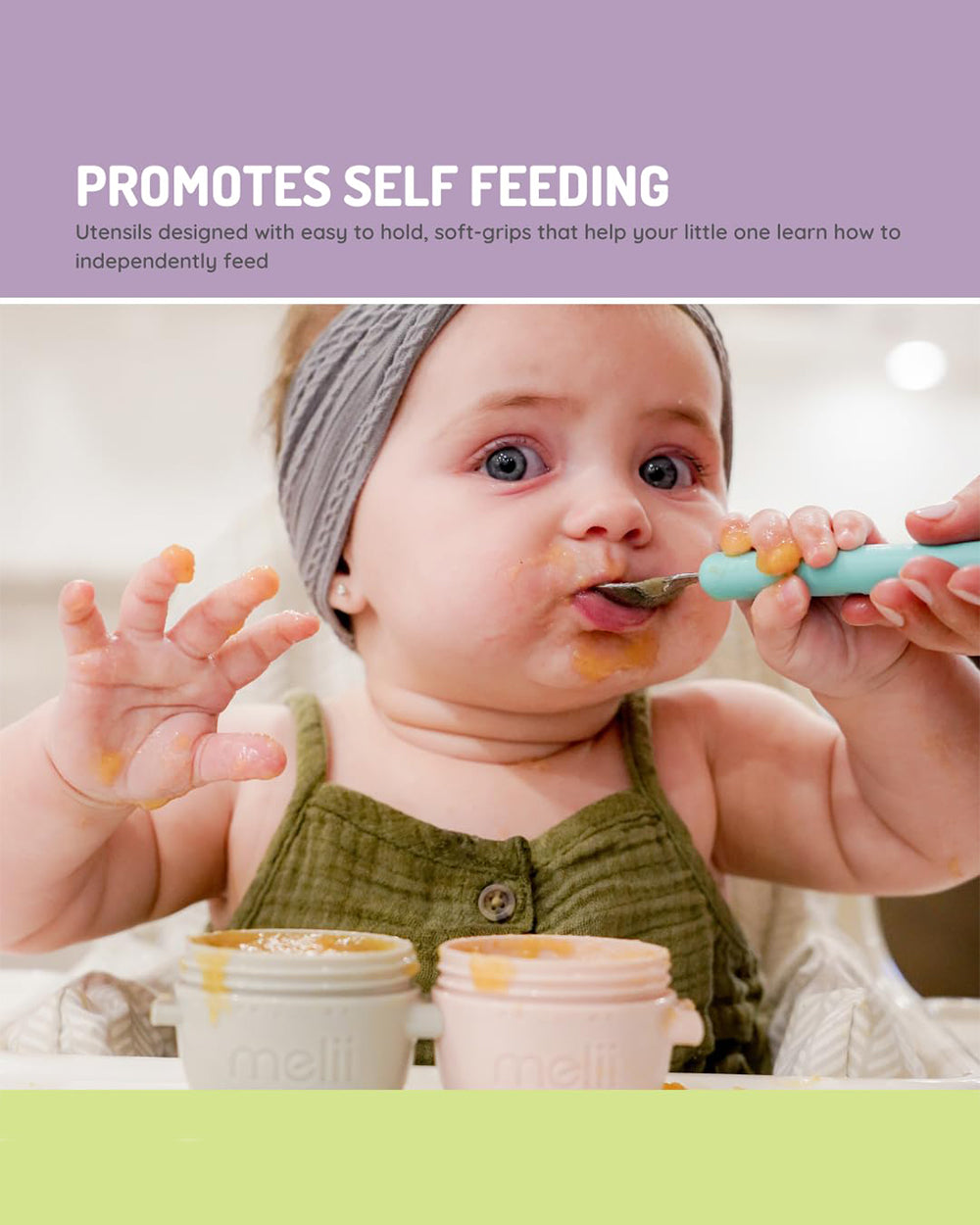 • Soft-Grip Spoon: Holds just the right amount of food for easy feeding.