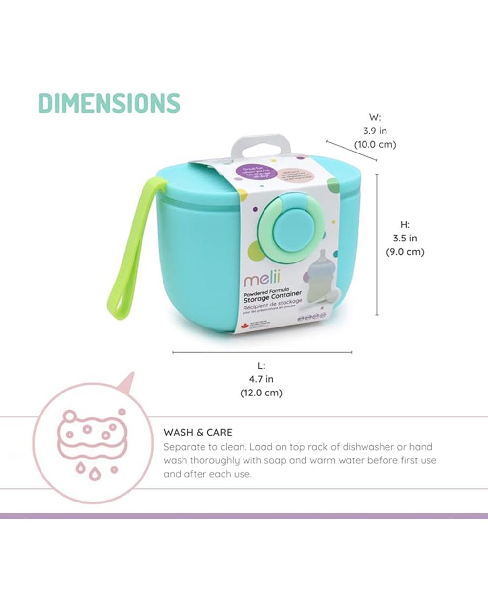 The melii Baby Formula Storage Container is a durable, thoughtfully designed storage solution for parents on the go. It features a compact, portable design with an integrated scoop and a secure carrying handle perfect for accurate portioning and mess free feeding, whether at home or traveling.