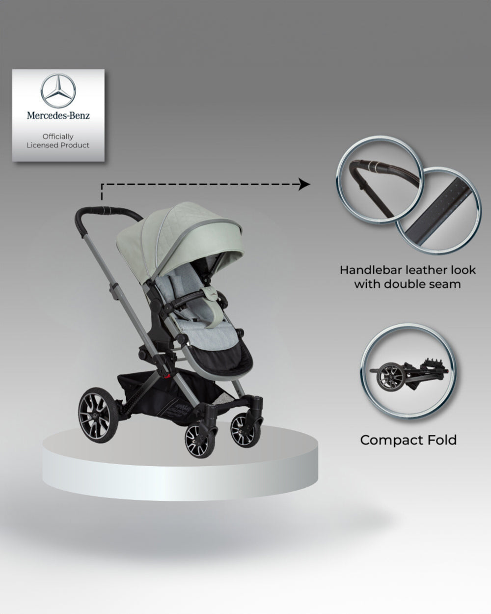 Mercedes-Benz Avantgarde GTX Baby Stroller-Height Adjustable Parent Handle Bar-Flat Reclining Seat & Reversible Seat-Includes Bag2Go Organiser & Rain Cover-2 Years Warranty-For 0 to 5Y-Sage Grey