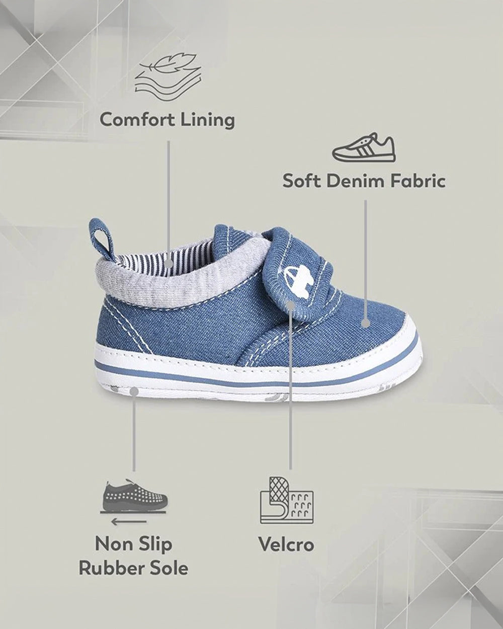 Mi Arcus Blue Velcro Pre-Walker Booties-For Infants