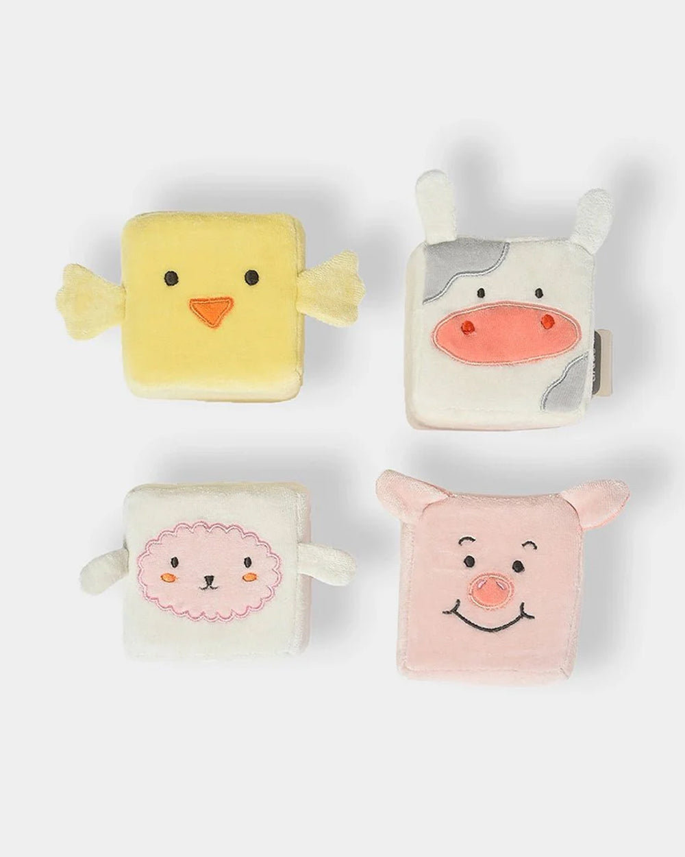 Mi Arcus Farm Friends Animal Face Cubes-Soft Toy-100% Cotton-Pack of 4-Plush Cuddly Toy For Newborn