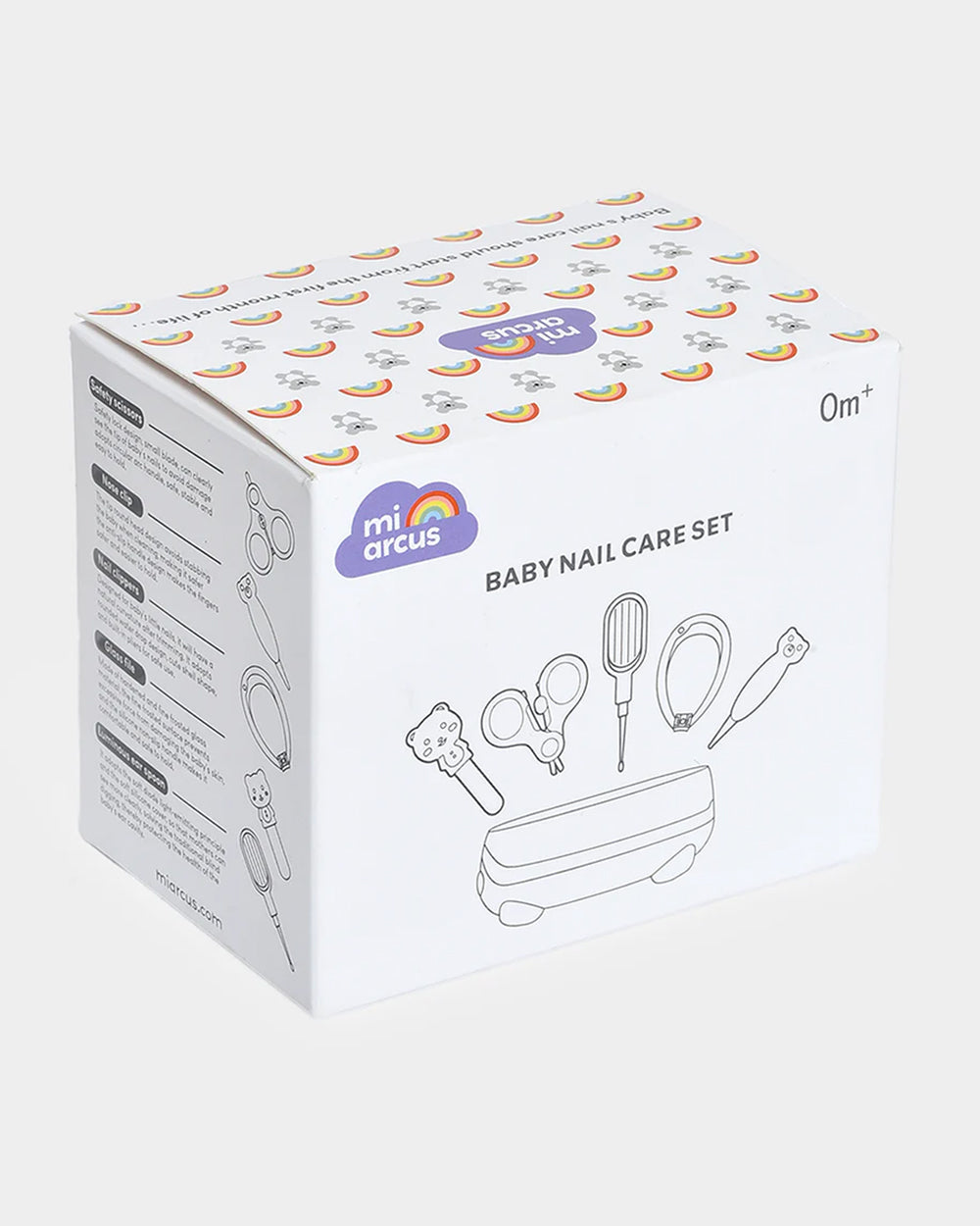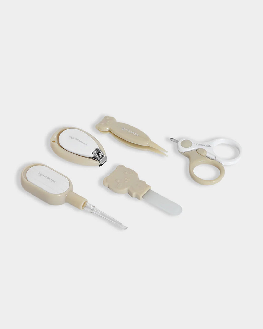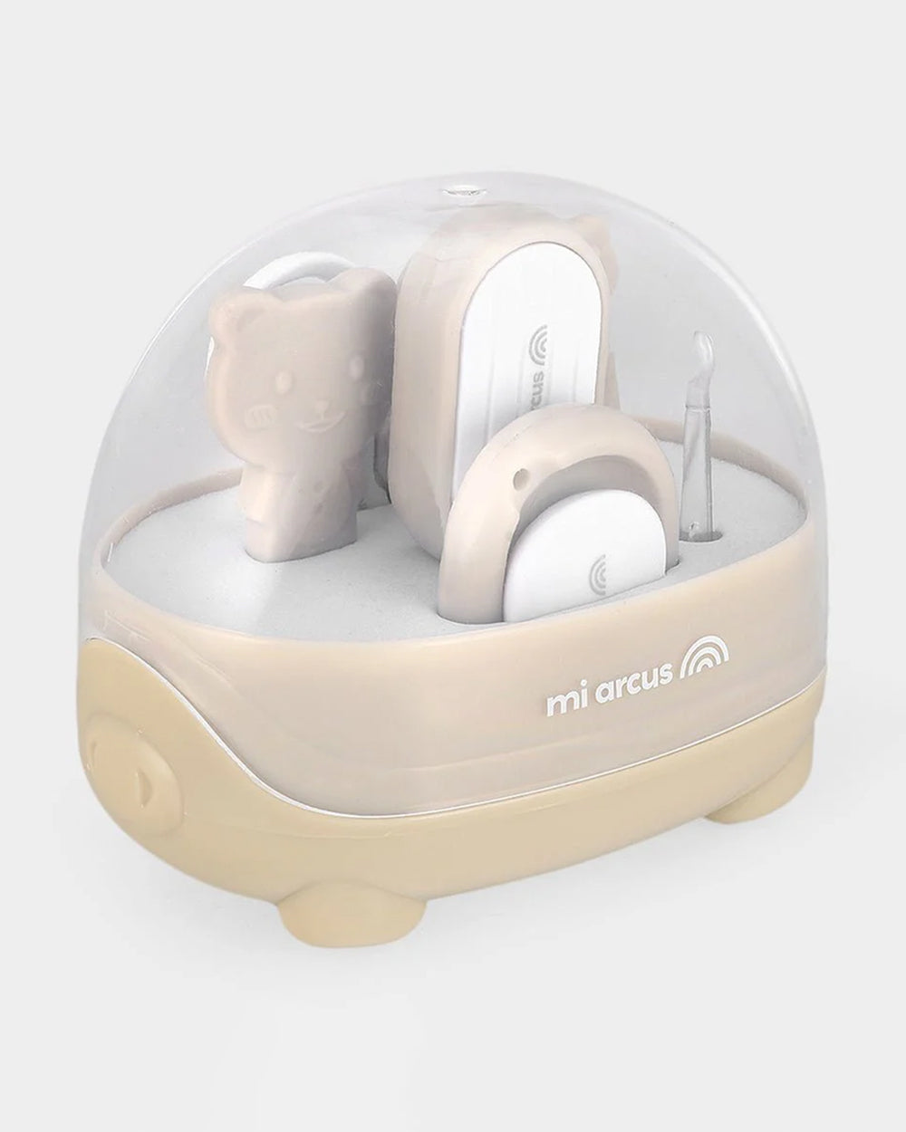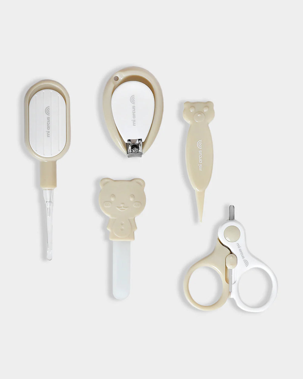 The Mi Arcus Luxe Nail Care Set is a premium 5-piece grooming kit crafted for newborns and infants (0 months+), blending style with safety. Each elegantly designed set features age-appropriate tools made from quality materials to help parents trim nails, clean ears, and care for tiny hands and faces with confidence—all perfectly packaged for easy storage or gifting.