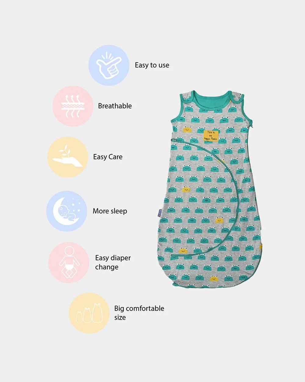 Mi Arcus Toad Newborn Summer Baby Sleeping Bag-with Shoulder Button & Side Zipper-Cotton-Green-Newborn Bed
