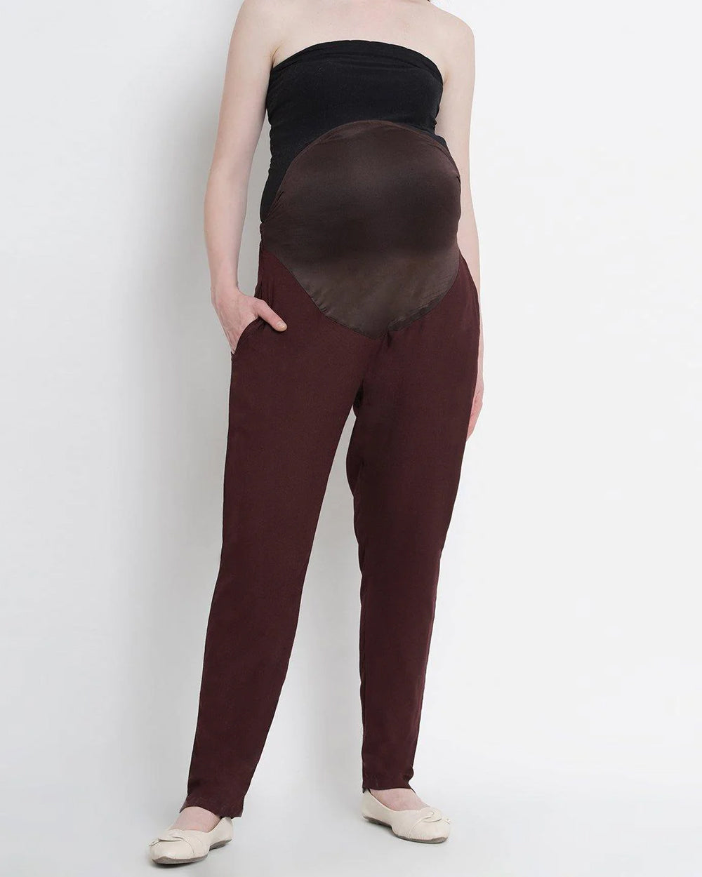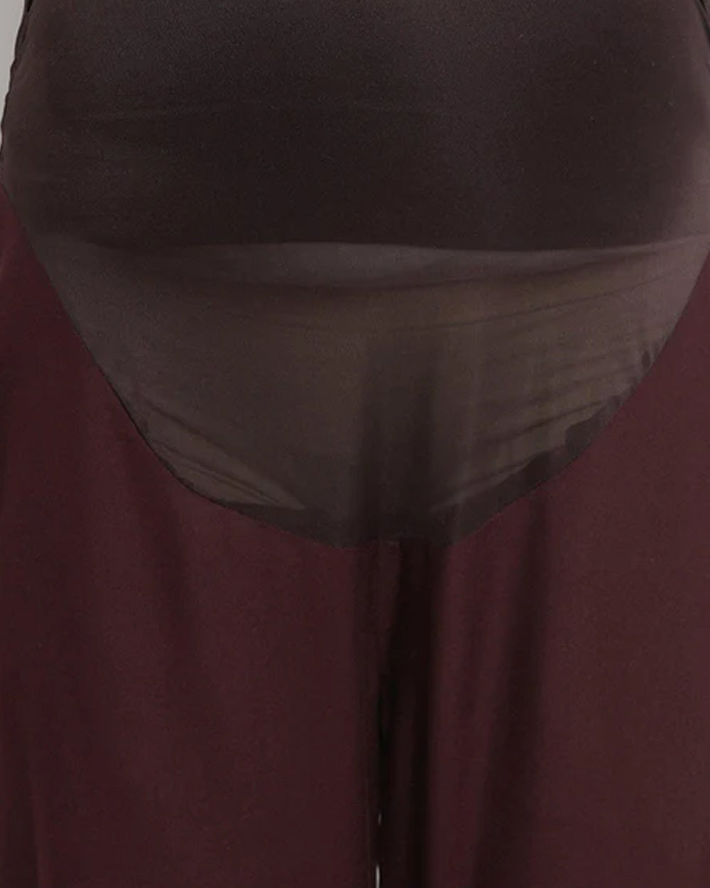 Mine4Nine Brown Maternity Trouser-Solid Color-Rayon-Bump Friendly