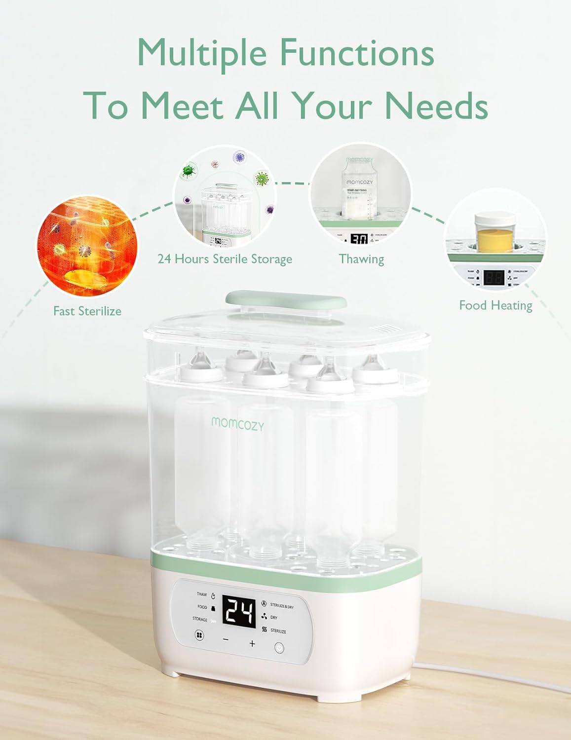 Momcozy Electric Bottle Sterilizer & Dryer - 8-in-1 Multi-Function - Large Capacity - Auto Shut Off - Safe & Efficient
