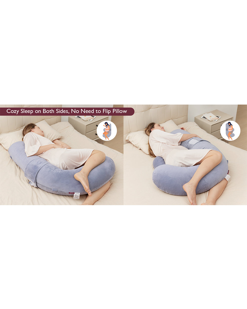 The Momcozy Original F Shaped Maternity Pillow with a luxurious velvet cover provides full-body support from back to belly, helping relieve pregnancy discomfort and improve sleep quality. With an adjustable belly wedge and space-saving design, it’s ideal for side sleeping, lounging, and postpartum support, offering comfort that lasts through every trimester and beyond.