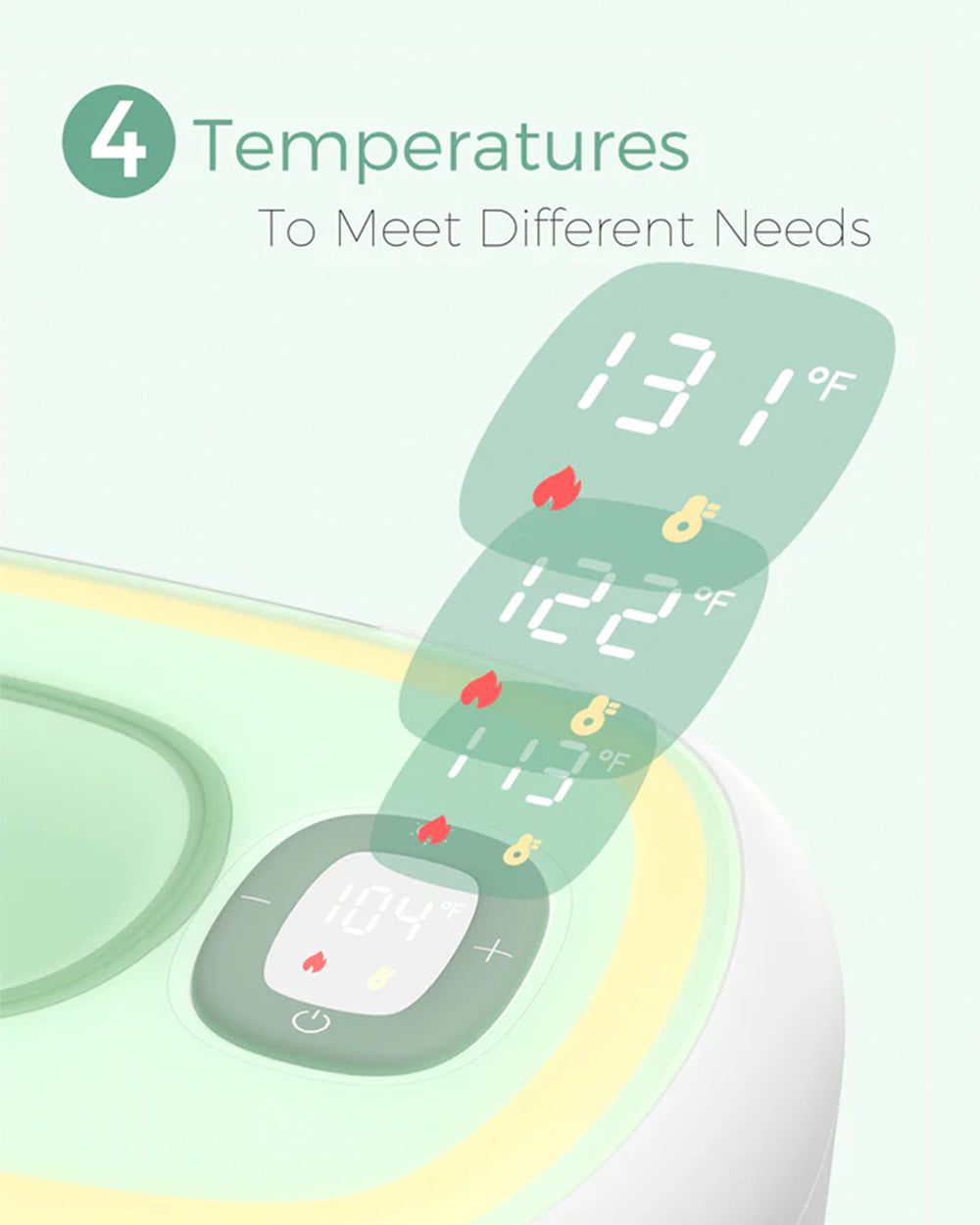 • Adjustable Settings: Offers 4 different temperature settings (from 104℉ to 131℉) and a 3-level night light.
