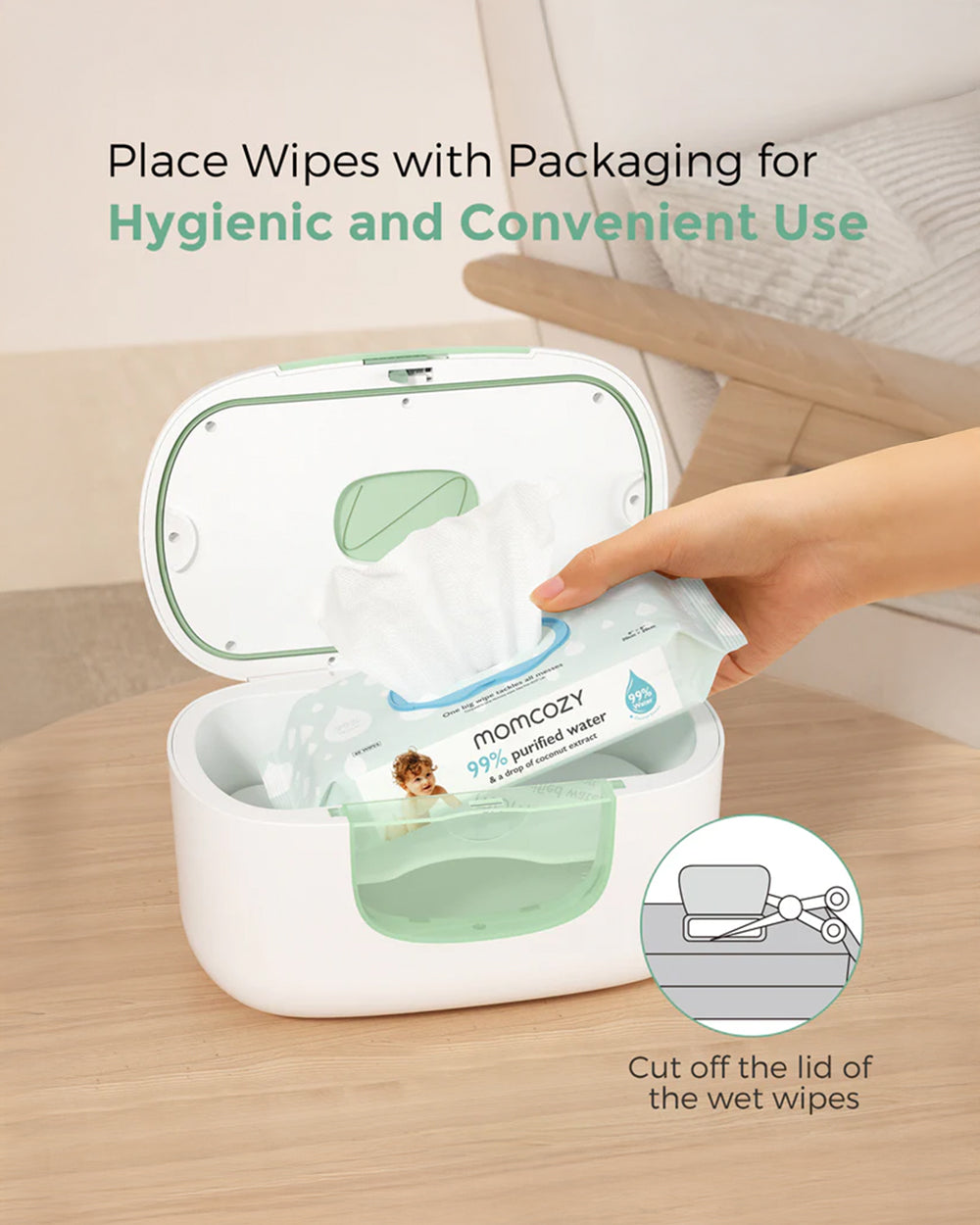 • Wide Compatibility: Compatible with Momcozy's large wipes and 90% of other wet wipes.