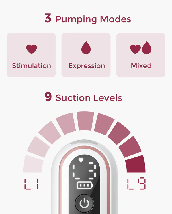 • 9 Adjustable Suction Levels: Flexible intensity options help moms easily find the most comfortable and effective setting.