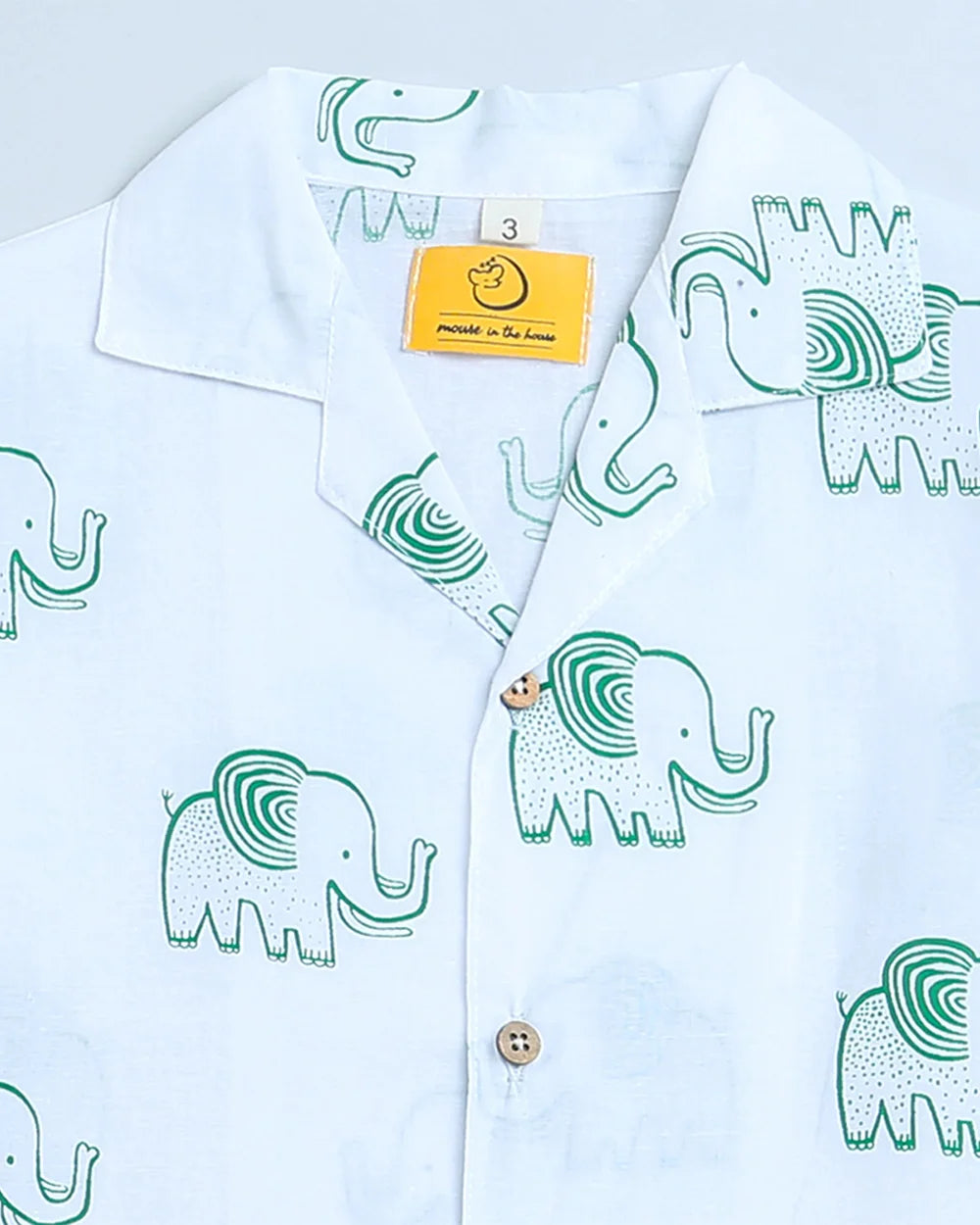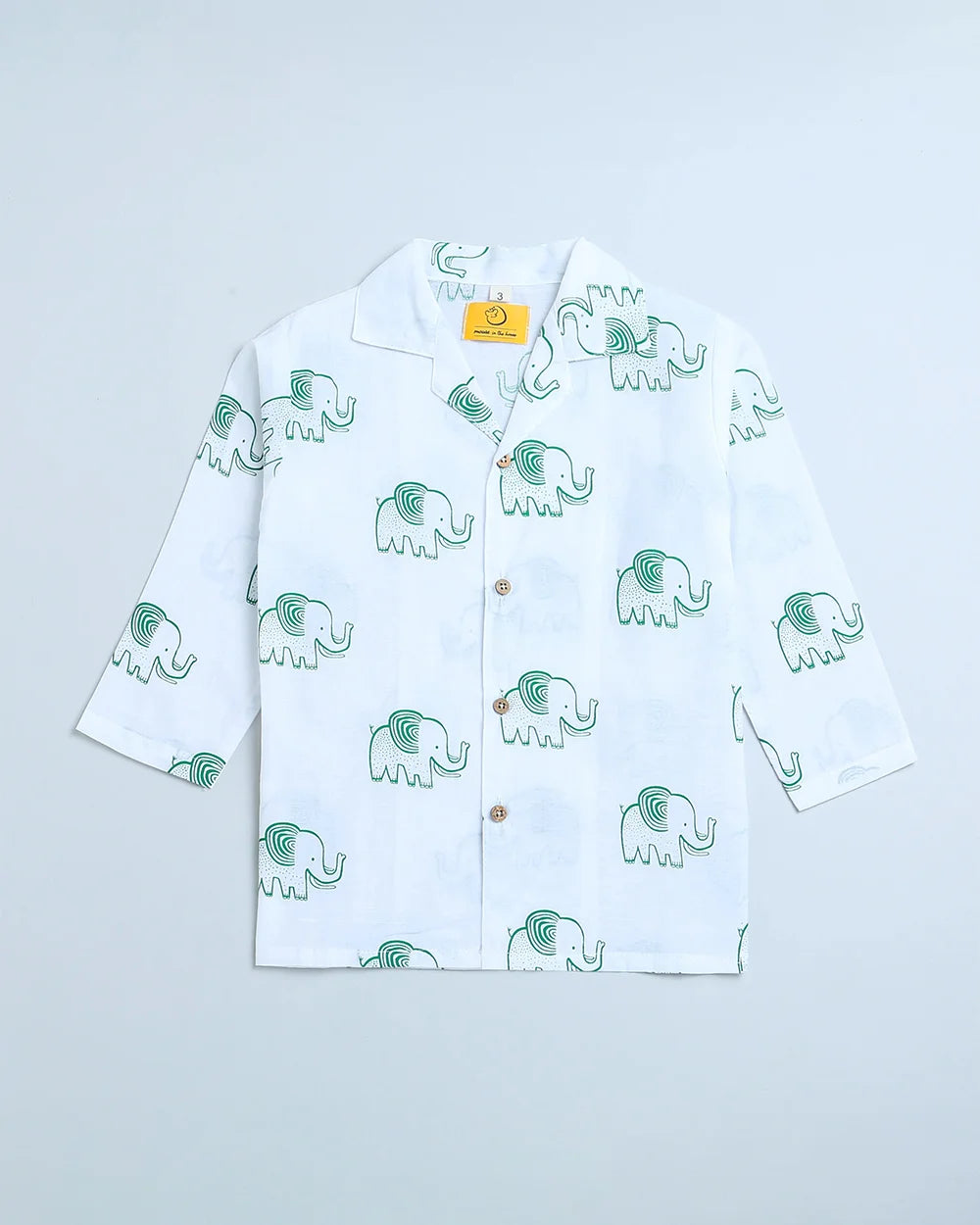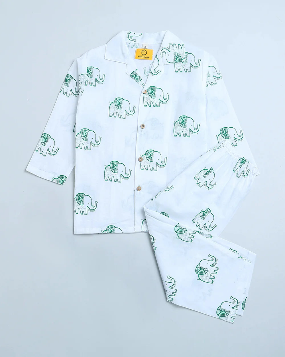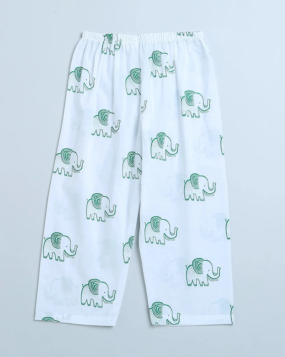 Mouse in the House White & Green Nightsuit-A Stomping Elephant-Cotton-For Infants