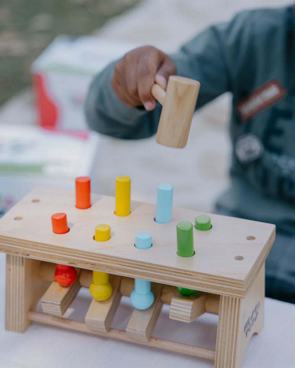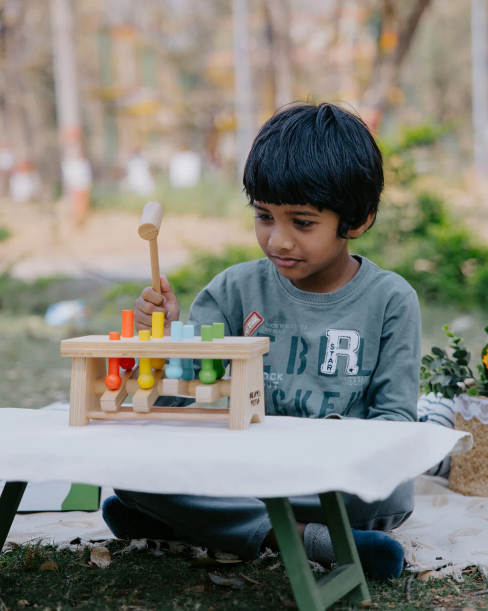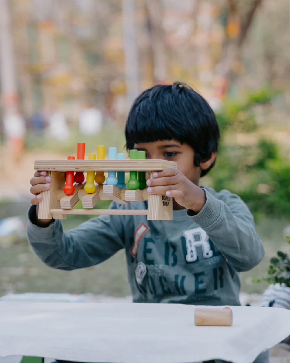 • Improves Hand-Eye Coordination: Helps develop motor skills as children hammer pegs into place.