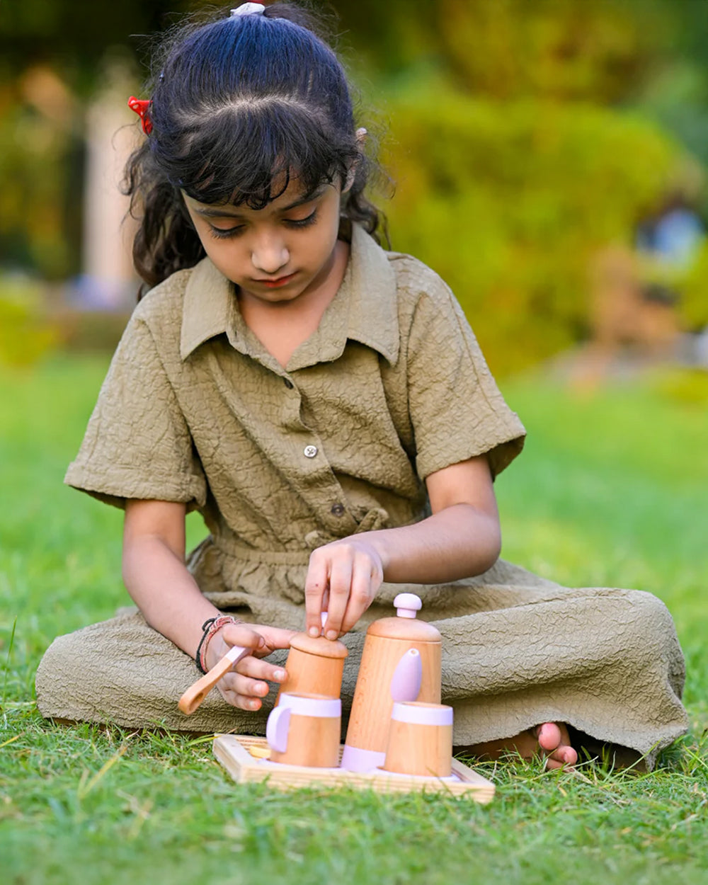 • Two Cups & Saucers: The set features two beautifully crafted wooden tea cups and saucers, perfectly sized for small hands. Your child can now serve tea to their guests with elegance and flair.