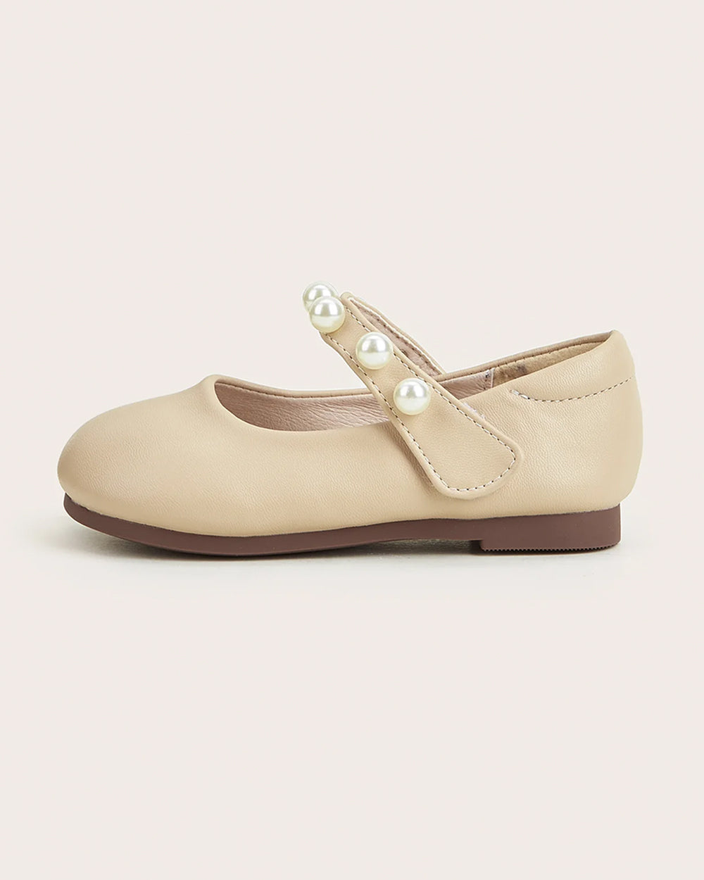 NINO BELLO Beige Pearl Strap Velcro Bellies For Infants