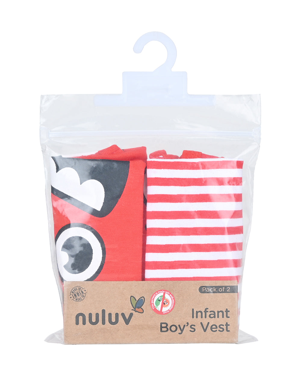 nuluv Red Vests-Cotton-Striped-Pack of 2-For Infants