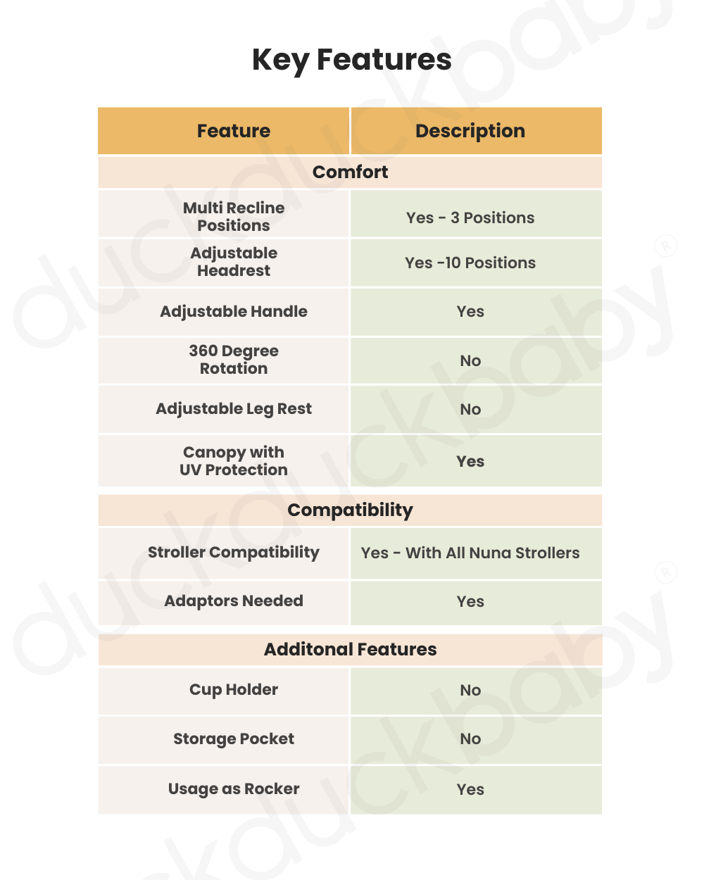 • Luxe Leatherette Carry Handle: The stylish carry handle is not only elegant but also ensures a secure grip for parents on the go.
