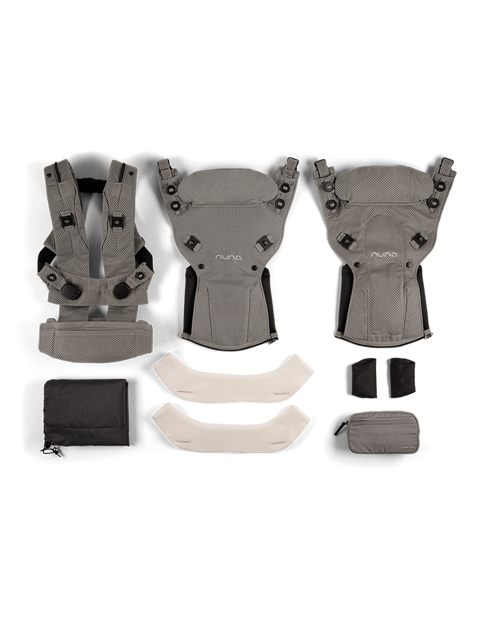 Nuna Cudl Deux Baby Carrier-4 Carrying Positions-Interchangeable Mesh & Cotton Panels For All Weather Comfort-Includes Storage Bag, 2 Bibs, Wristlest Pouch & Harness Covers-For 0 to 3Y (3.5 to 16 Kg)-Shadow