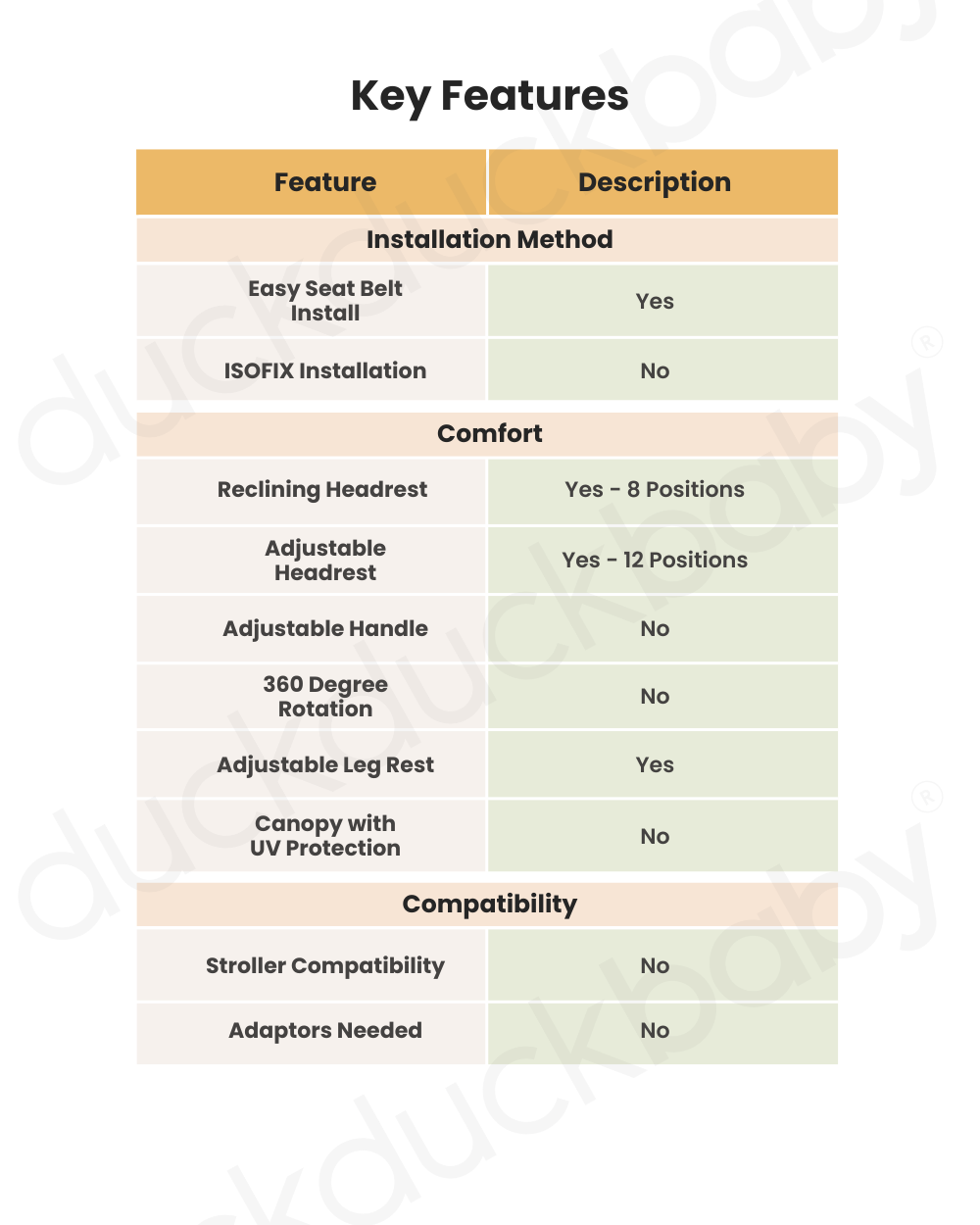 • Superior Protection: Boasts an all-steel frame, reinforced belt path, and the Aeroflex™ side impact protection system for robust safety.