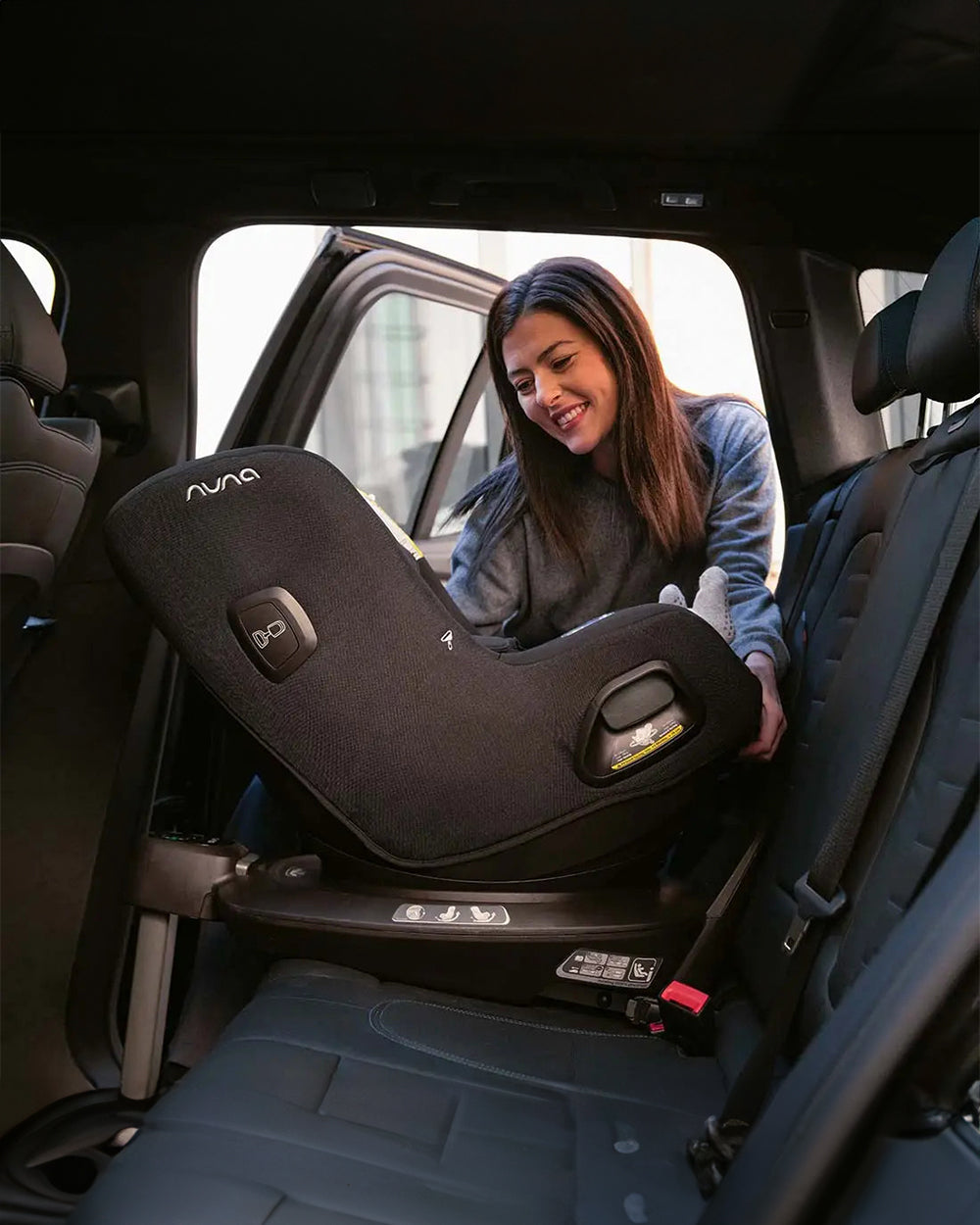 Nuna Pruu Baby Car Seat-Convertible Car Seat-360 Degree Rotation-10 Position Reclining Seat-Integrated Rebound Bar to Minimize Rotation During Impact-2 Years Warranty-For 0 to 4Y (Upto 19Kg)-Granite