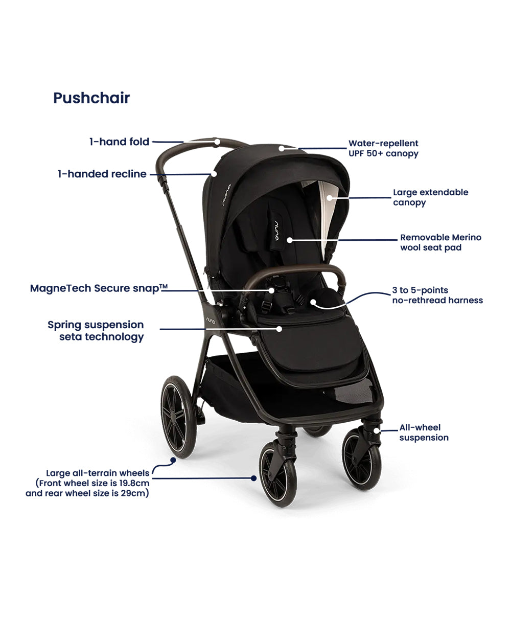 Nuna TRIV LX Baby Stroller-With Cup Holder-2025 Edition-Big Rear Wheels-Reversible & Near Flat Reclining Seat-One Hand Fold-2 Years Warranty-For 0 to 4 Years (Upto 22 Kg)-Caviar