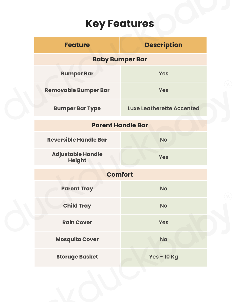 • Elegant Leatherette Touches: Luxe accents on the pushbar and armbar add a stylish finish to every stroll.