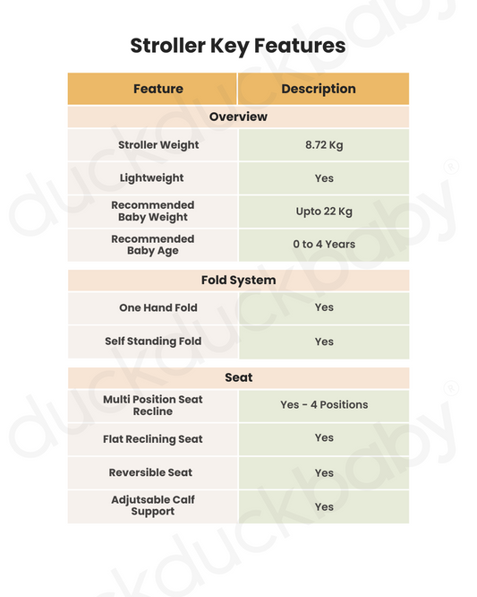 • Reversible Seat: The stroller is cleverly designed with a seat that faces and folds both ways, no matter what direction baby's facing.