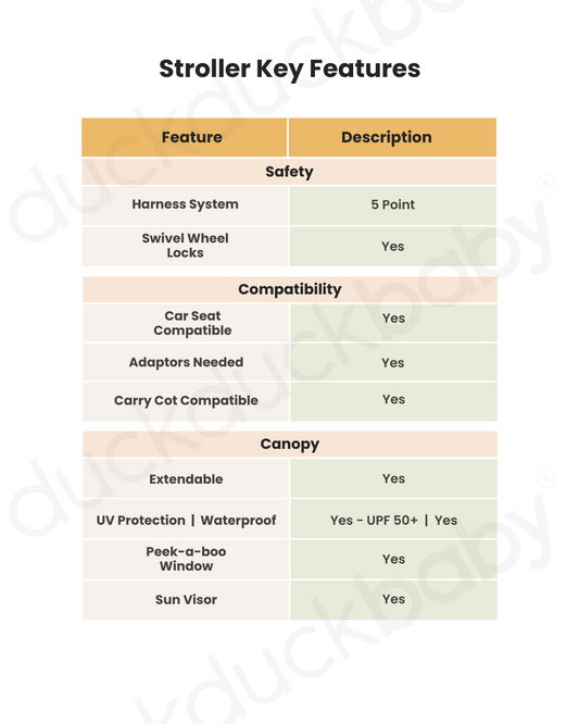 • Water-repellent UPF 50+ canopy: Features is extendable and features a flip out eyeshade and window.