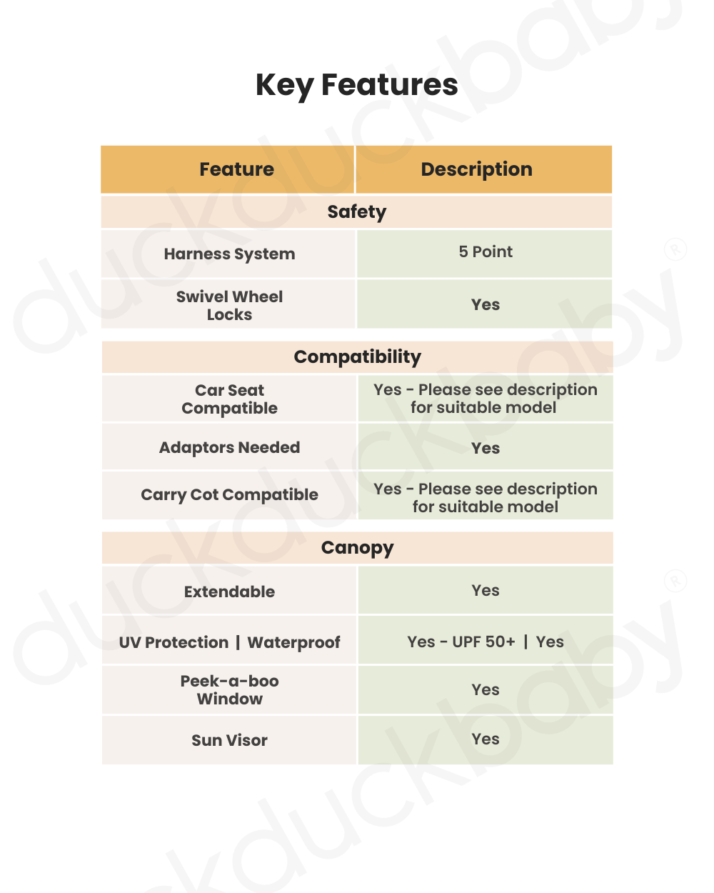 • Water-repellent UPF 50+ canopy: Features is extendable and features a flip out eyeshade and window.