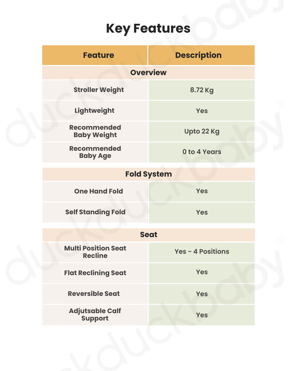 • Spring suspension technology: It has Spring suspension technology under the seat, for smooth rides with an all-wheel suspension and a one-touch braking system for smooth strolls and effortless stops, even in the bustling city environment.