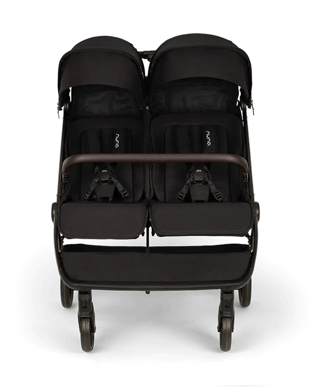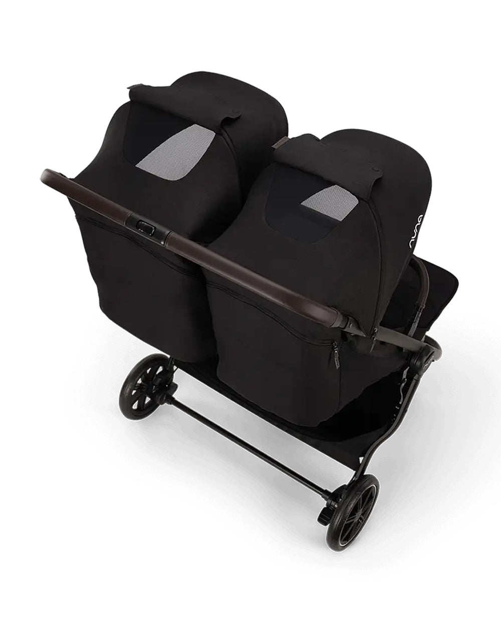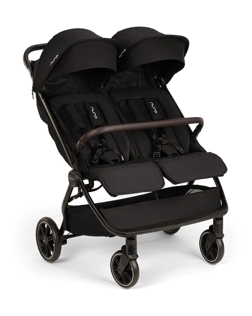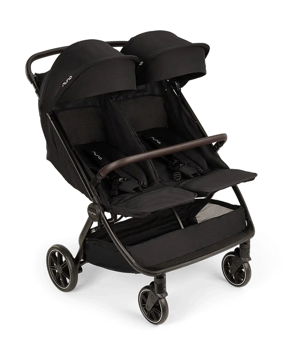 Nuna TRVL Dubl Twin Baby Stroller-Individually Adjustable Near Flat Reclining Seat-One Hand Fold-With Cup Holder-Large Storage Basket-2 Years Warranty-0 to 4Y (Upto 22 Kg)-Caviar