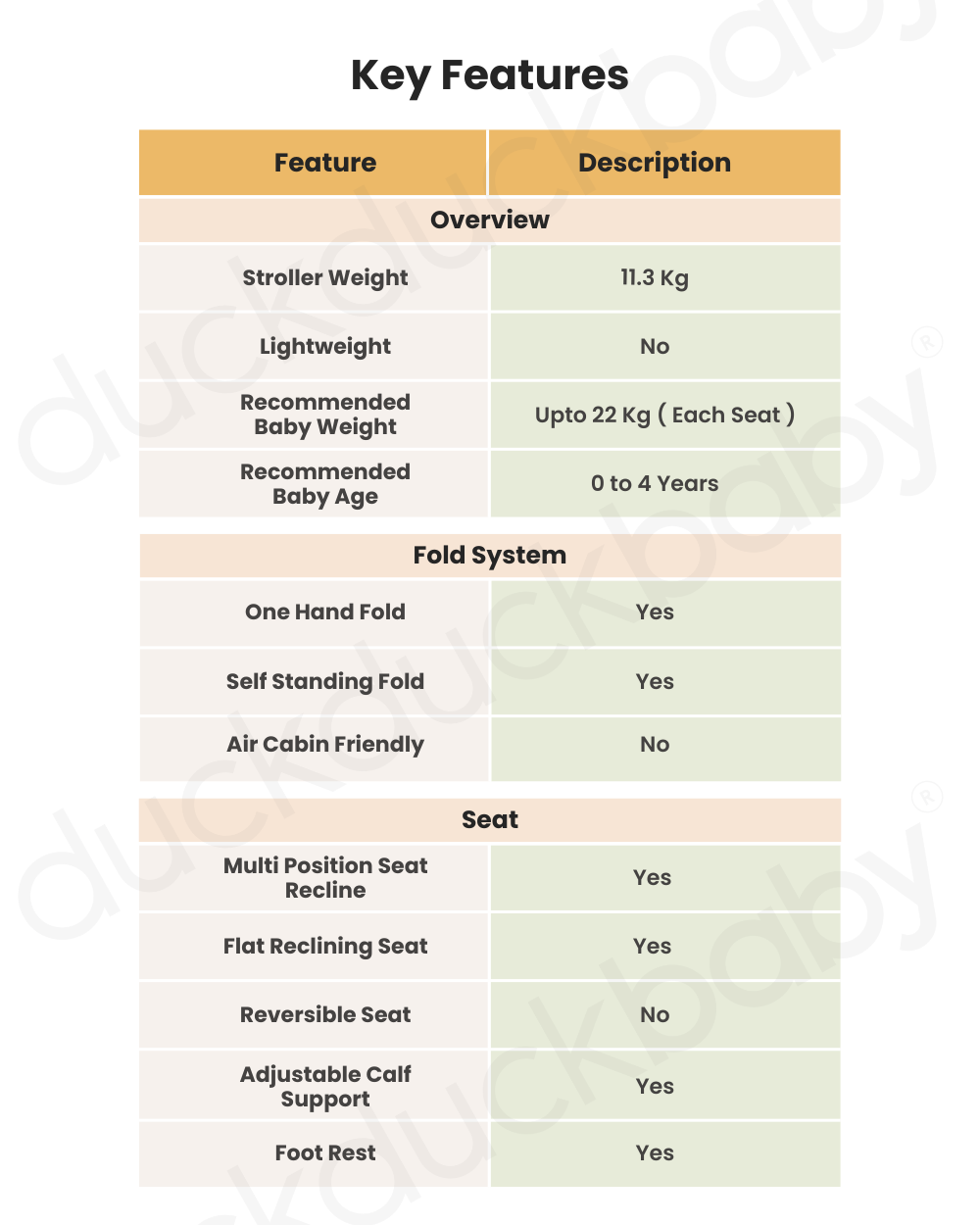 • Side-by-Side Seating for Two: Comfortably seats two children from birth up to 22 kg per seat, providing a cozy, individualized space for each child.