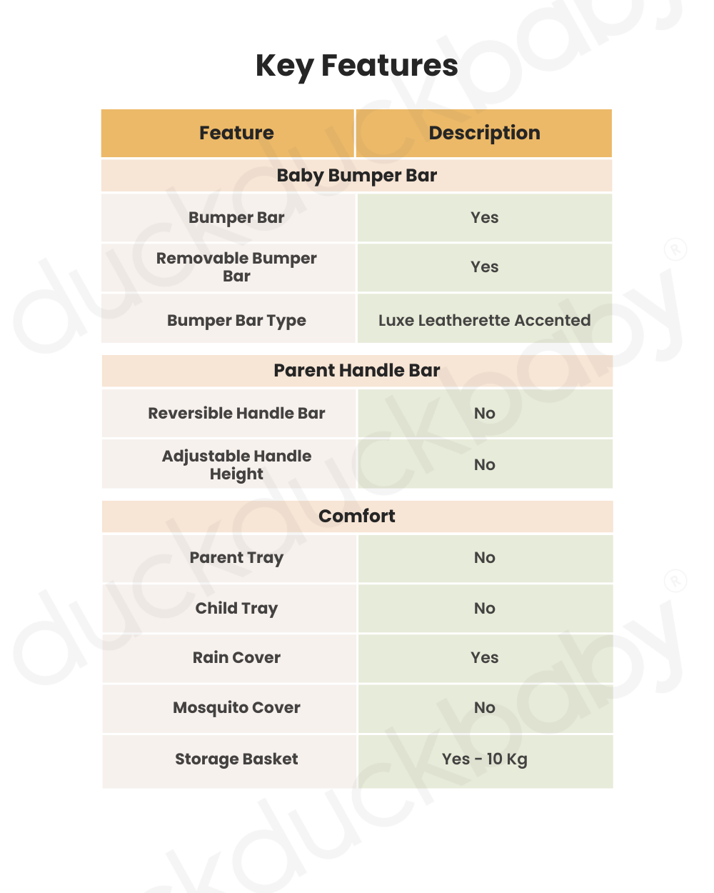 • Storage Basket: This stroller features a large, easily accessible storage basket that holds up to 10 kg, ideal for carrying essential items, toys, and snacks.