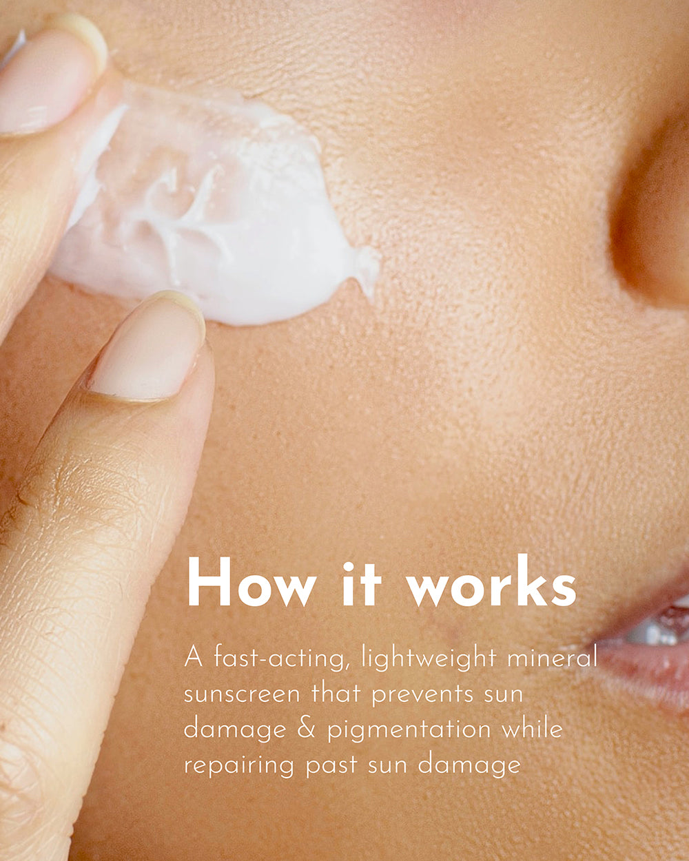 • Lightweight and Invisible: Enjoy the delight of a sunscreen that prioritizes aesthetics. Enriched with Zinc Oxide and Titanium Dioxide, the formula seamlessly blends into the skin without leaving a visible white cast or a heavy sensation. It's sun protection that goes unnoticed.