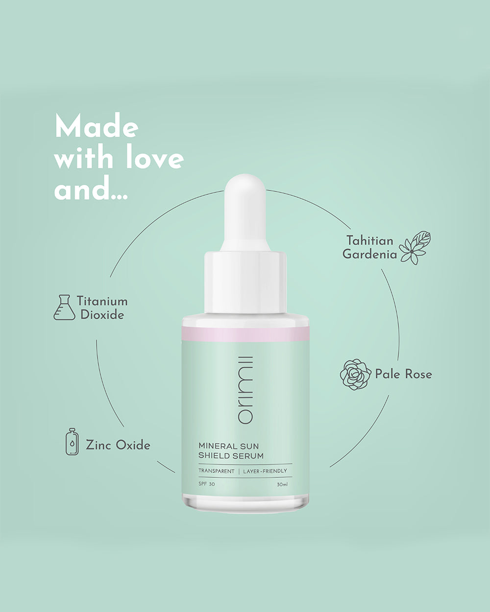 Orimii invites individuals to embrace the sun confidently using their 100% natural Mineral Sunshield Serum SPF 30+. Expertly formulated with physical filters, this sunscreen ensures broad-spectrum protection against both UVA and UVB rays, providing a shield without compromising on comfort.