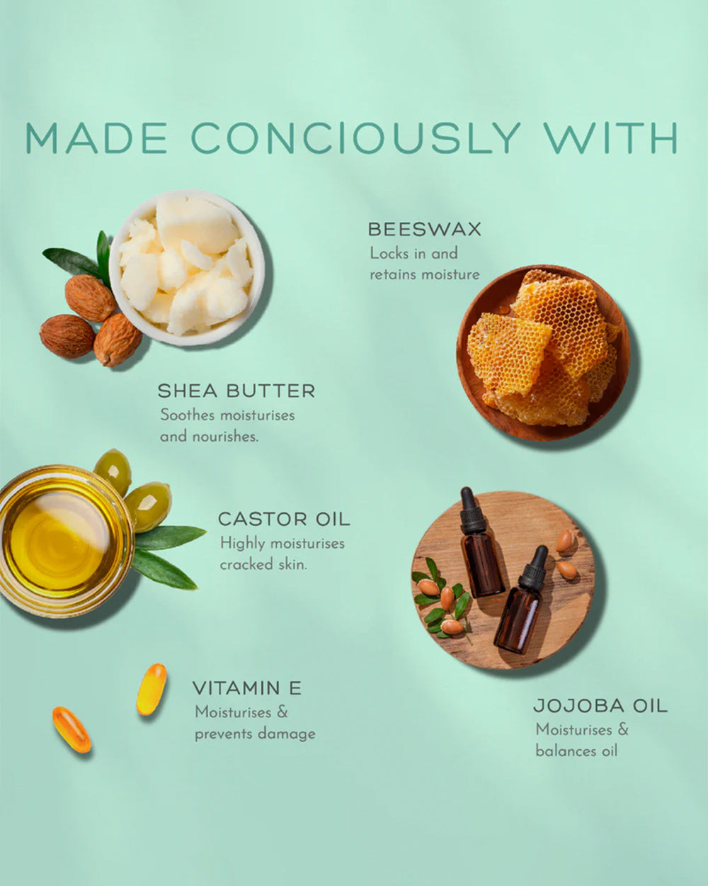 • Deep Nourishment: Shea Butter and Beeswax deeply moisturise and restore dry, cracked lips.