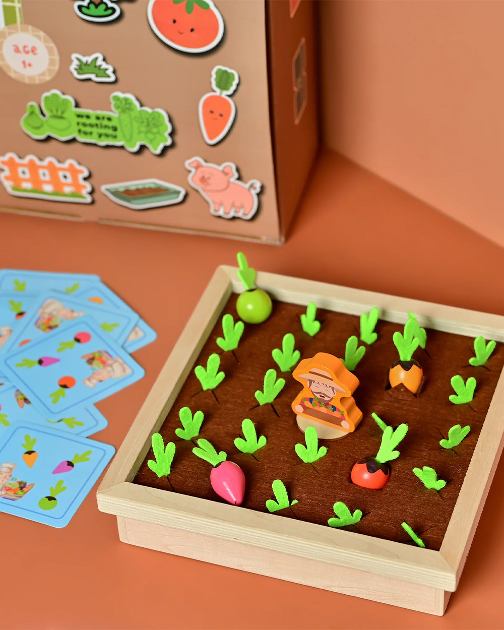 1x Wooden Box, 8x Card, 1x Scarecrow & 24x Vegetable