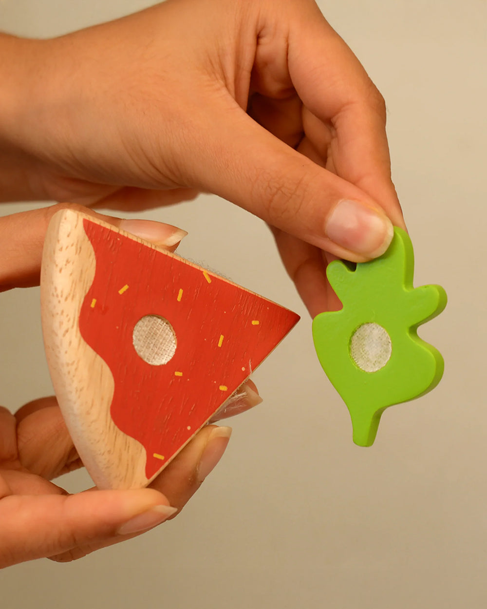 • Complete Topping Set: Comes with 6 pizza slices and a variety of toppings like tomato, cheese, mushroom, green pepper, onion, and rocket leaf for endless combinations.