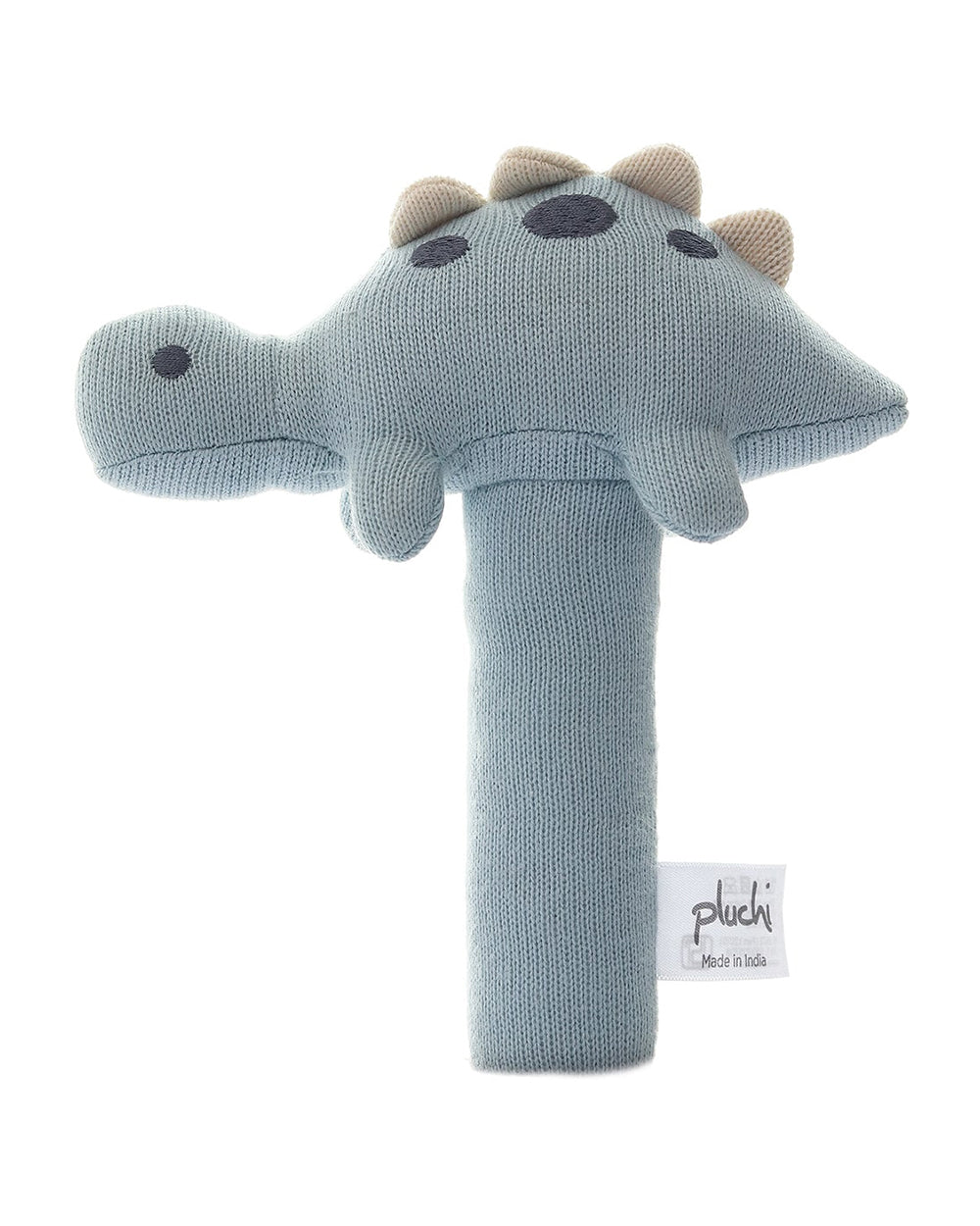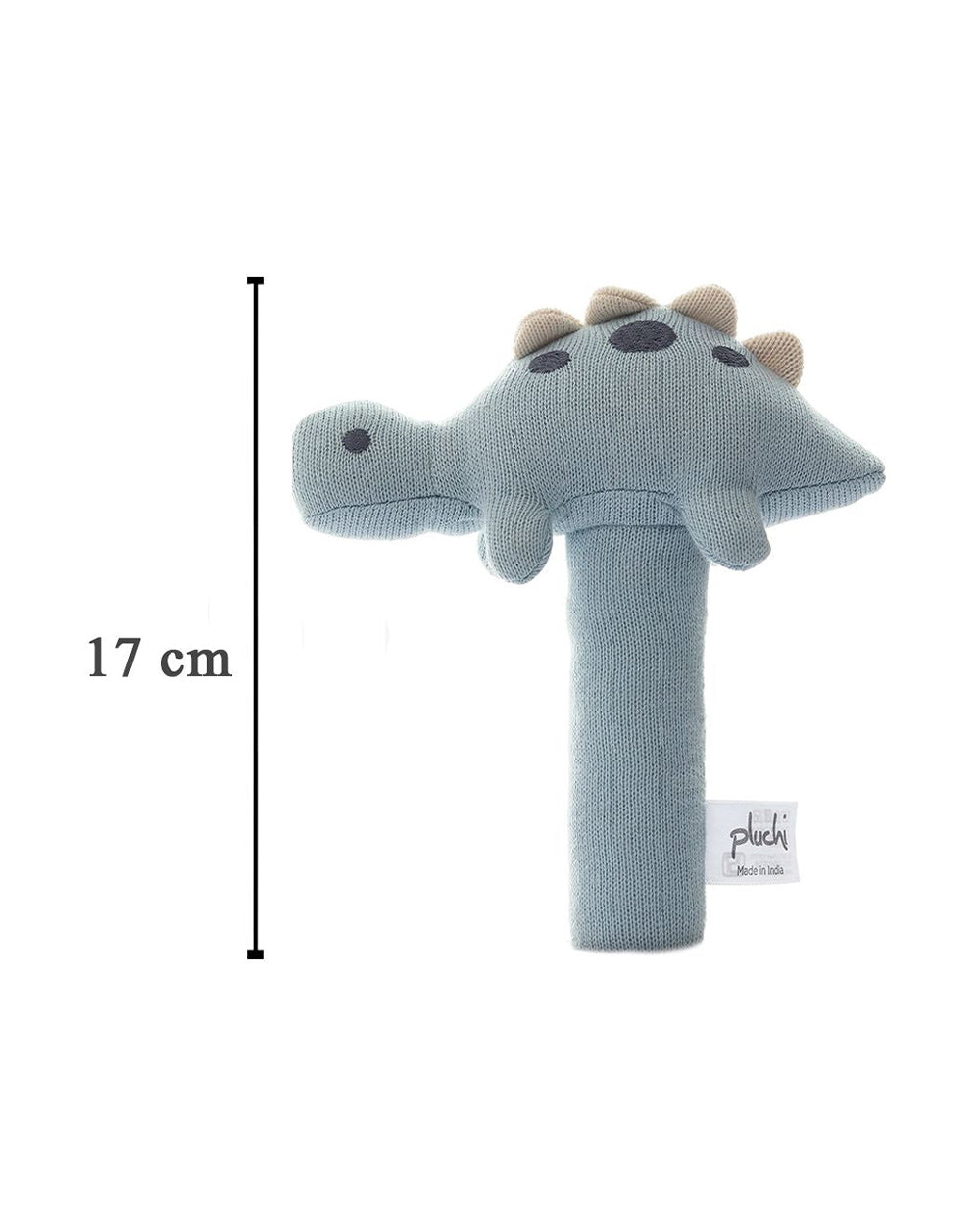 Pluchi Baby Blue Stego Dino-Promotes Tactile Stimulation-Easily Washable-Knitted Rattle Toy-For Infants