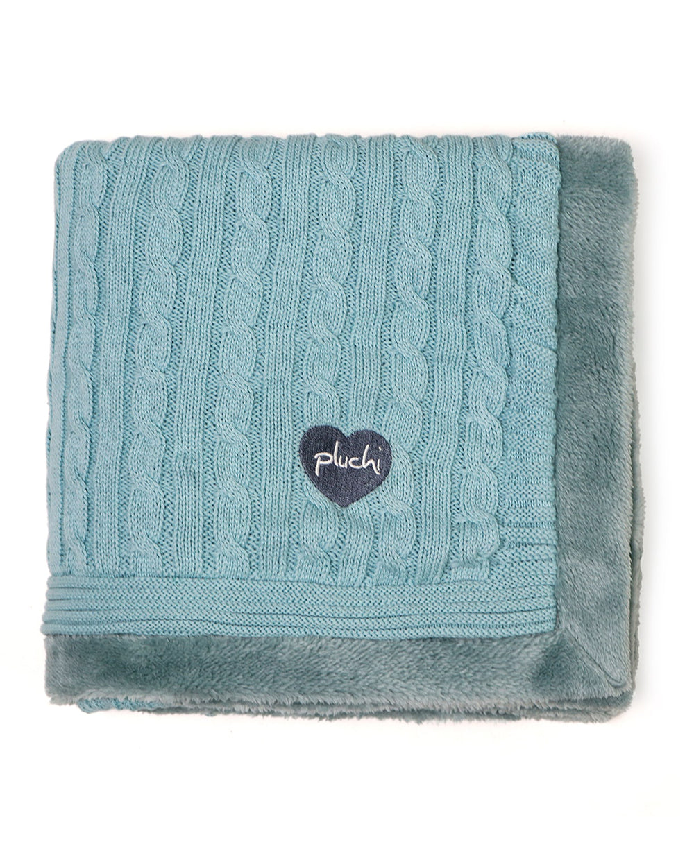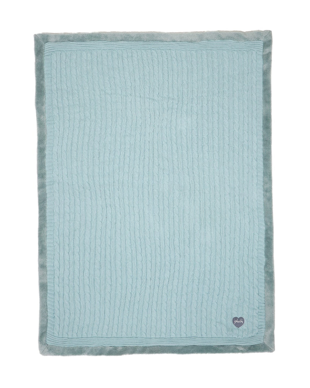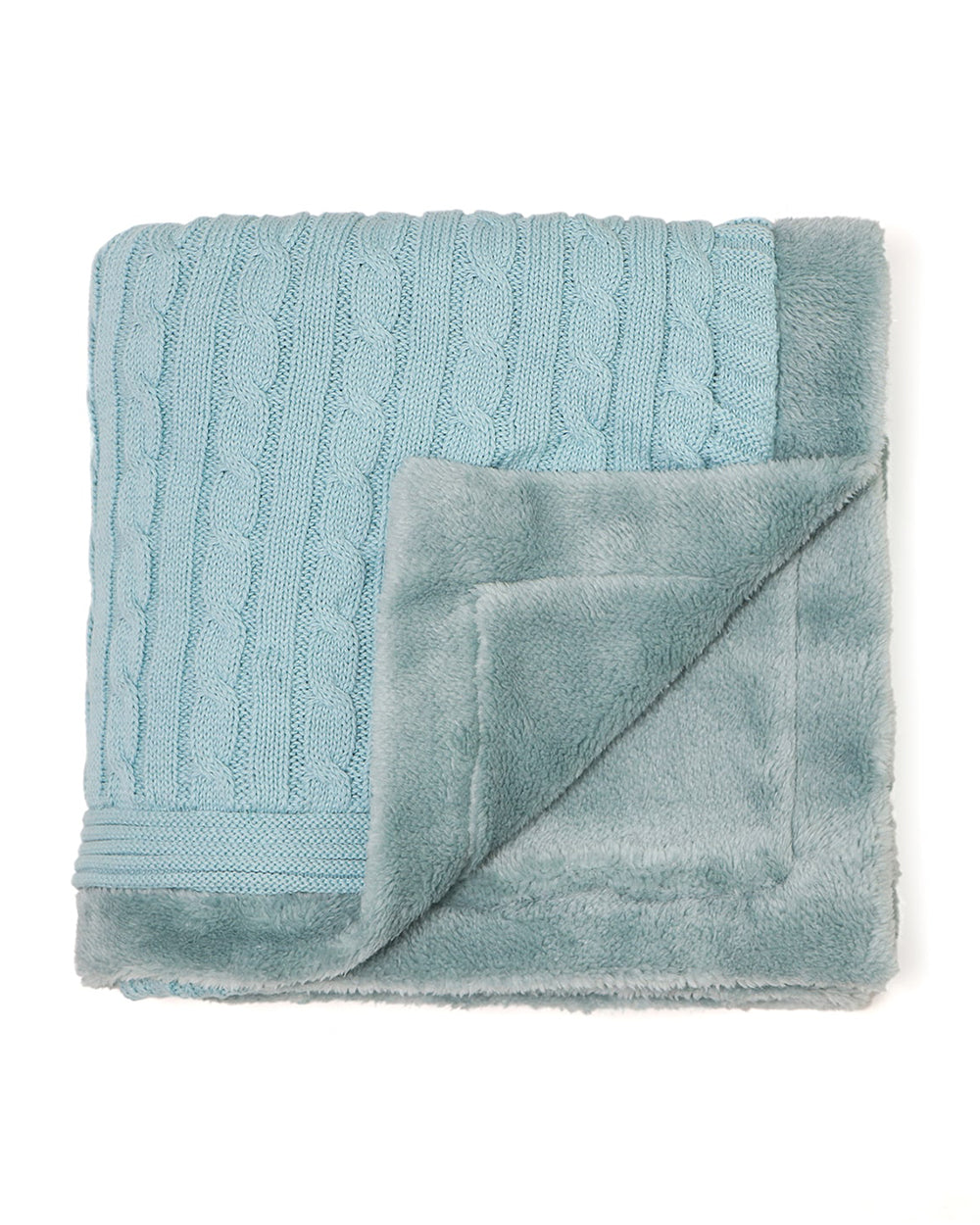 Pluchi Cable Knit Knitted Baby Blanket-Combed Cotton Blanket with Faux Fur Back-Light Blue-For Infants
