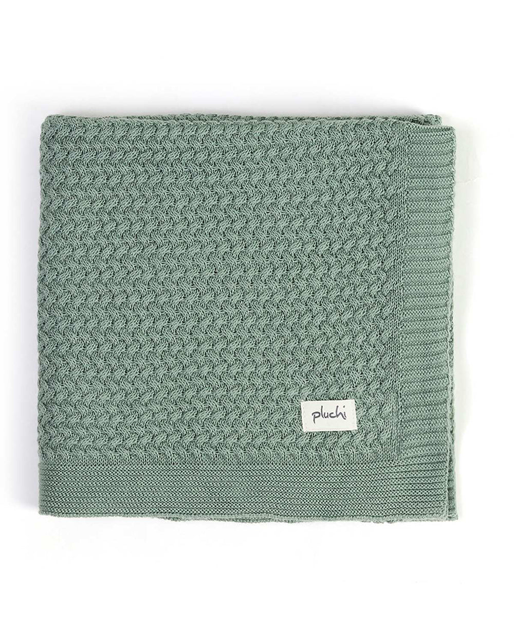 Pluchi Giggle Knit Knitted Baby Blanket-All Seasons Baby Blanket-Made With Ultra Soft & Breathable 100 % Cotton-Indus Blue-For Infants