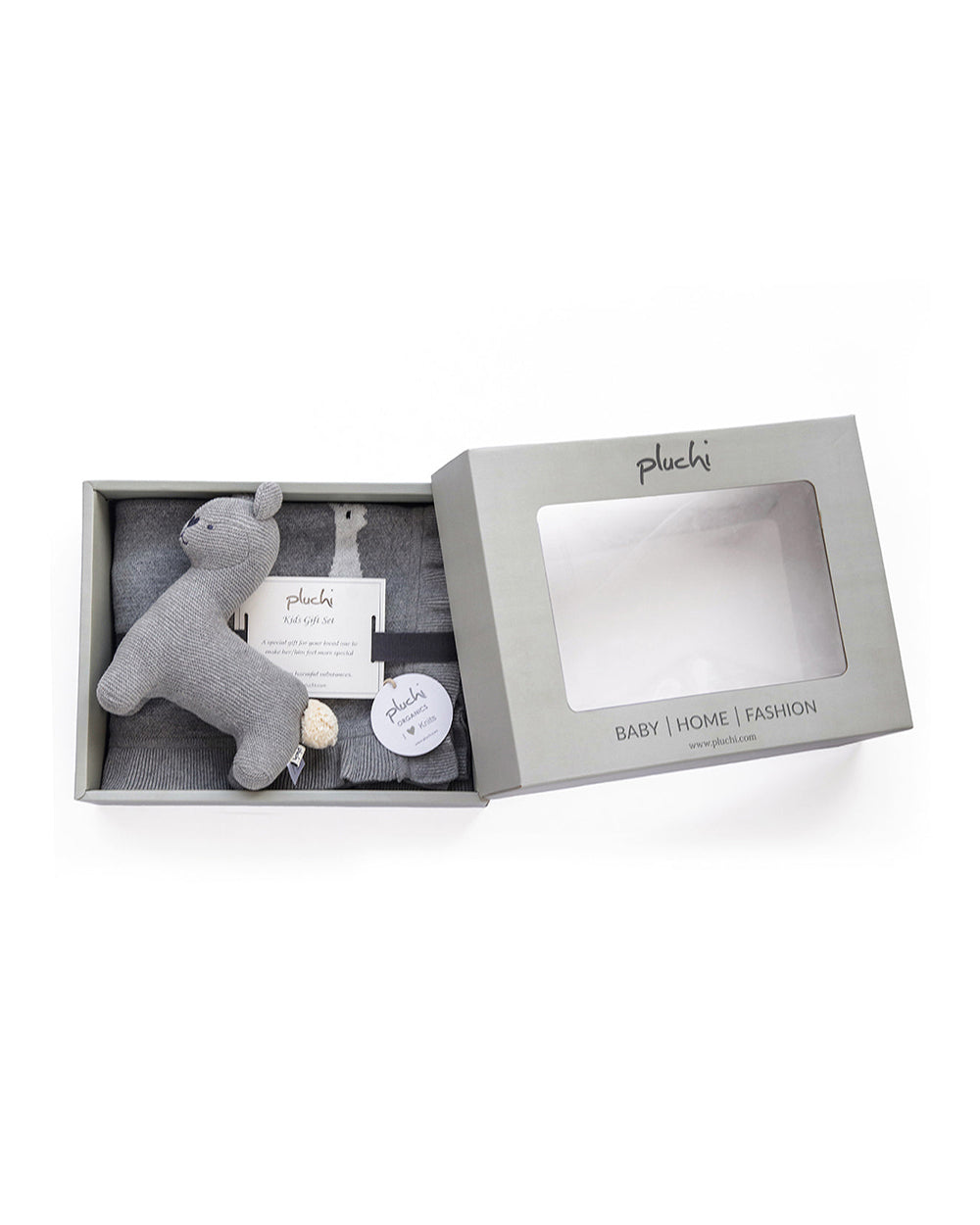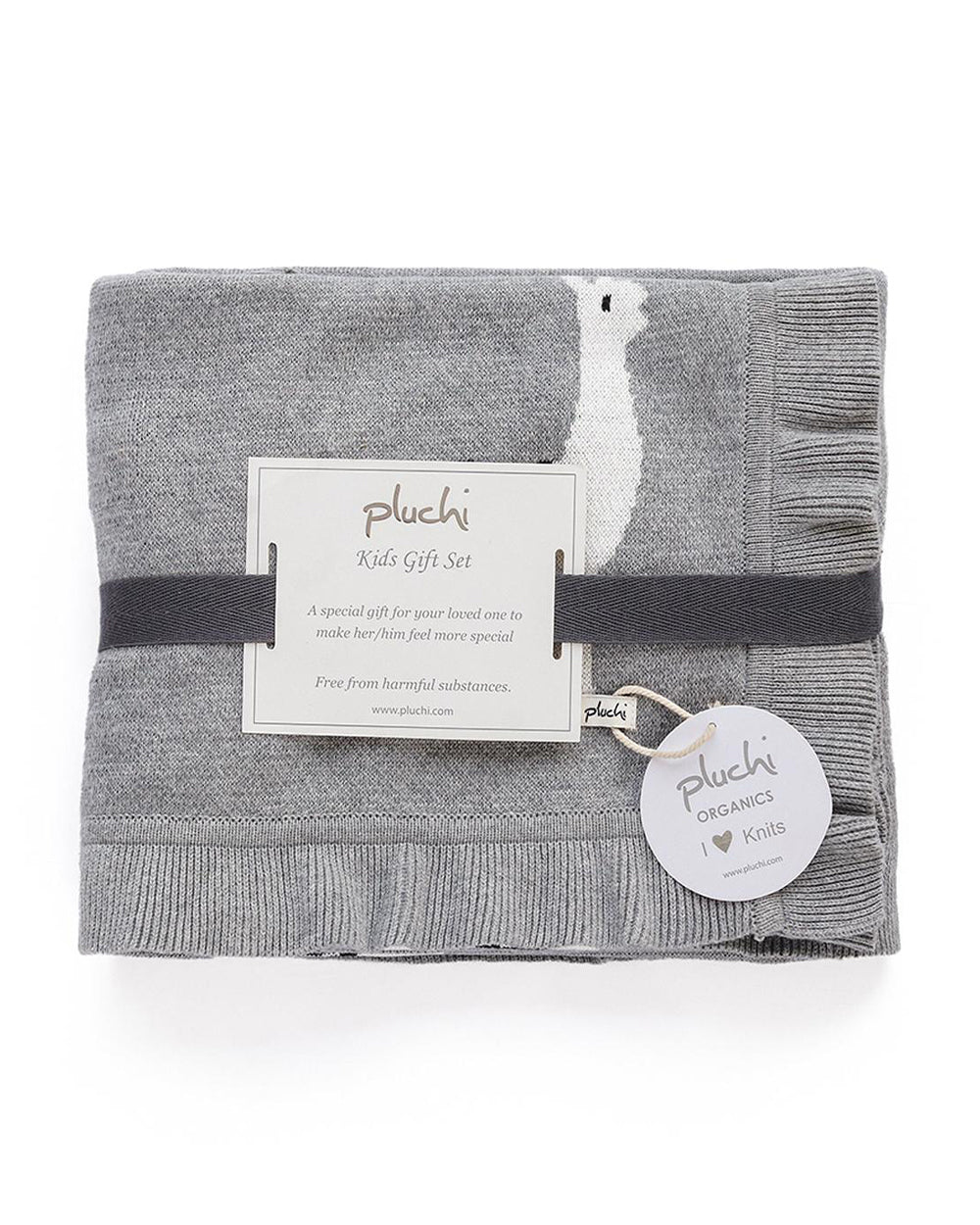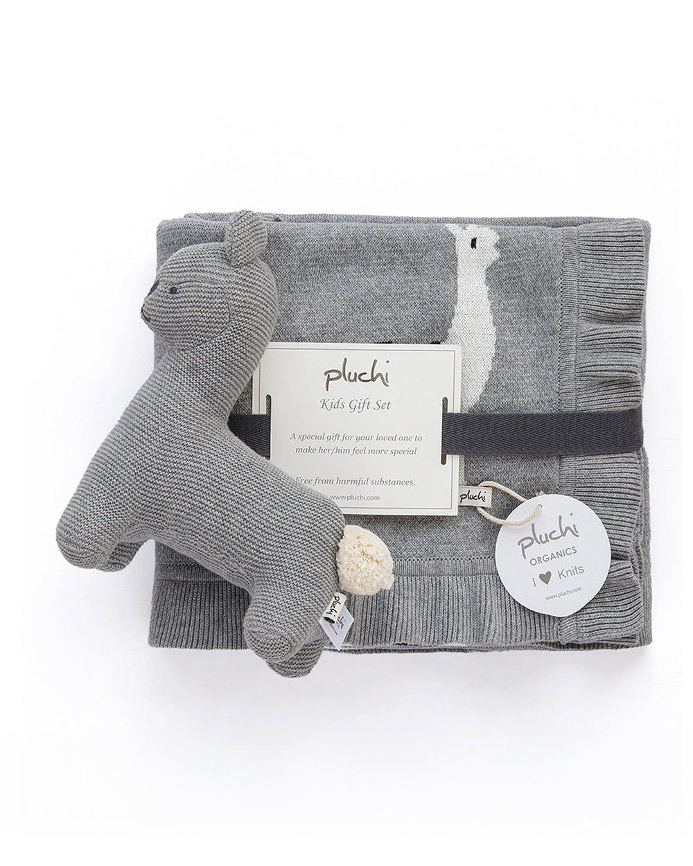 The Pluchi Sweet Lama Gift Bundle is a delightful and thoughtful gift set designed for newborns and infants. It includes a super soft knitted blanket and an adorable knitted lama soft toy, both crafted with 100% organic cotton for gentle comfort and care. This charming set is perfect for snuggling, playtime, and creating lasting memories.