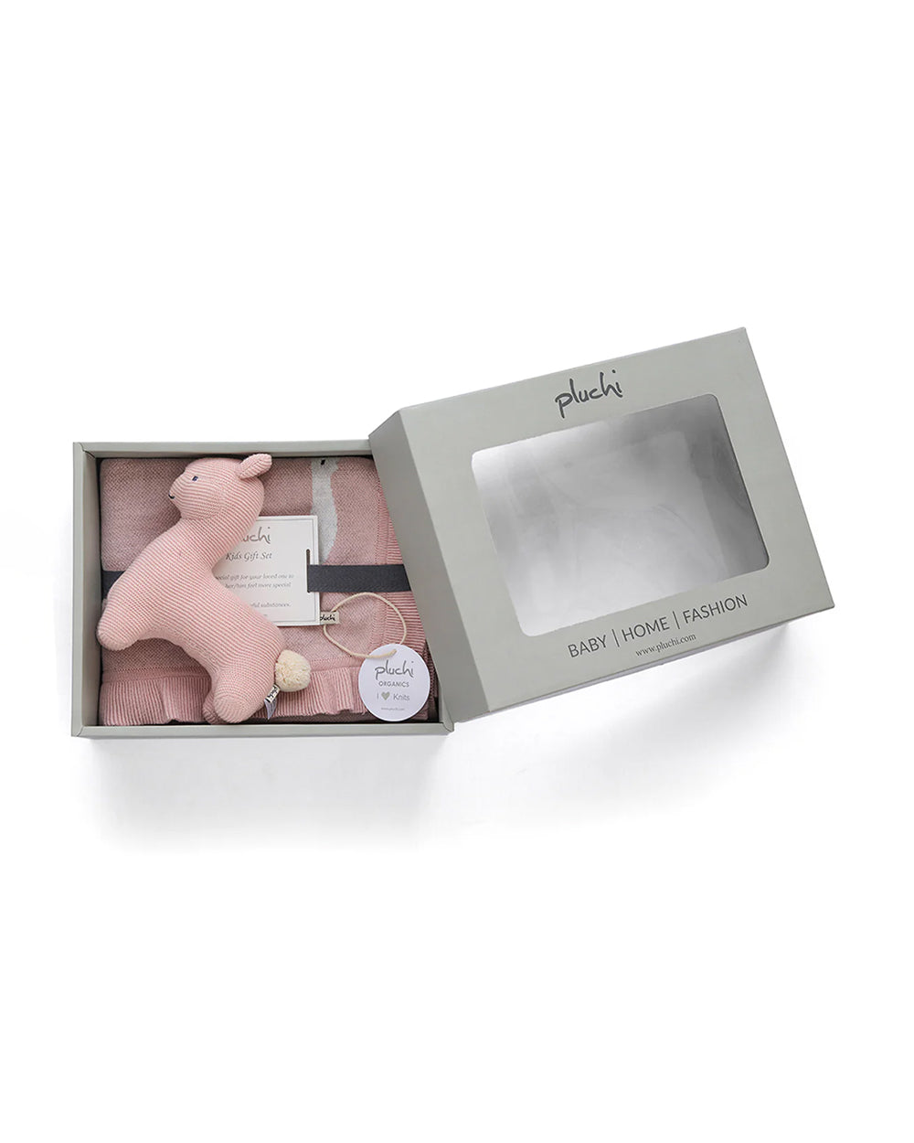 The Pluchi Sweet Lama Gift Bundle is a delightful and thoughtful gift set designed for newborns and infants. It includes a super soft knitted blanket and an adorable knitted lama soft toy, both crafted with 100% organic cotton for gentle comfort and care. This charming set is perfect for snuggling, playtime, and creating lasting memories.