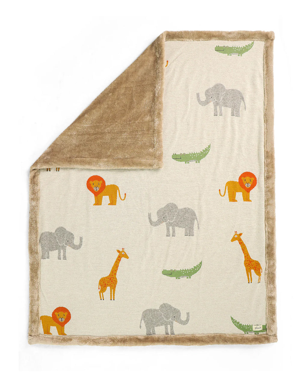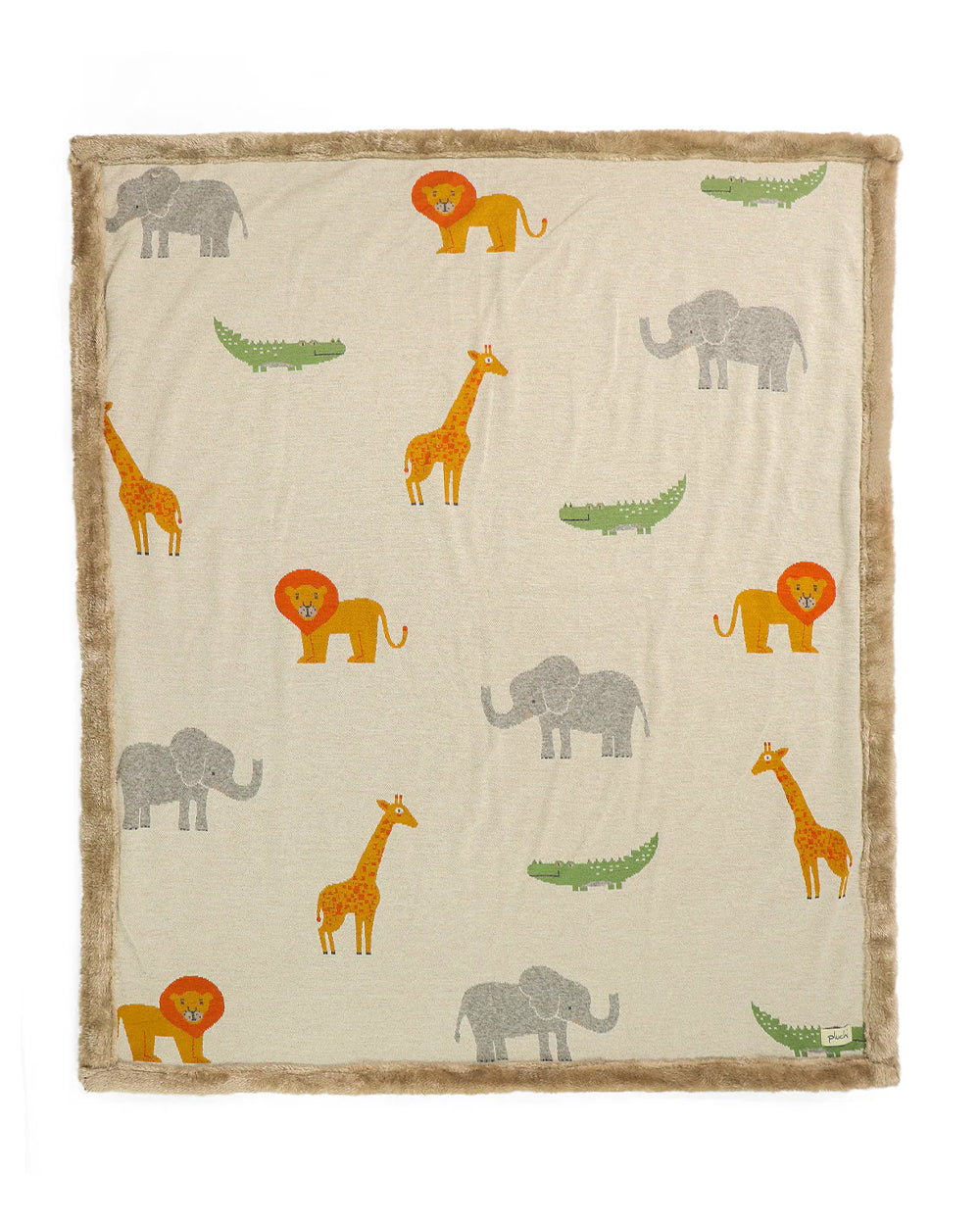 Pluchi Wild Safari Knitted Baby Blanket-Combed Cotton Blanket with Faux Fur Back-Multicolor-For Infants