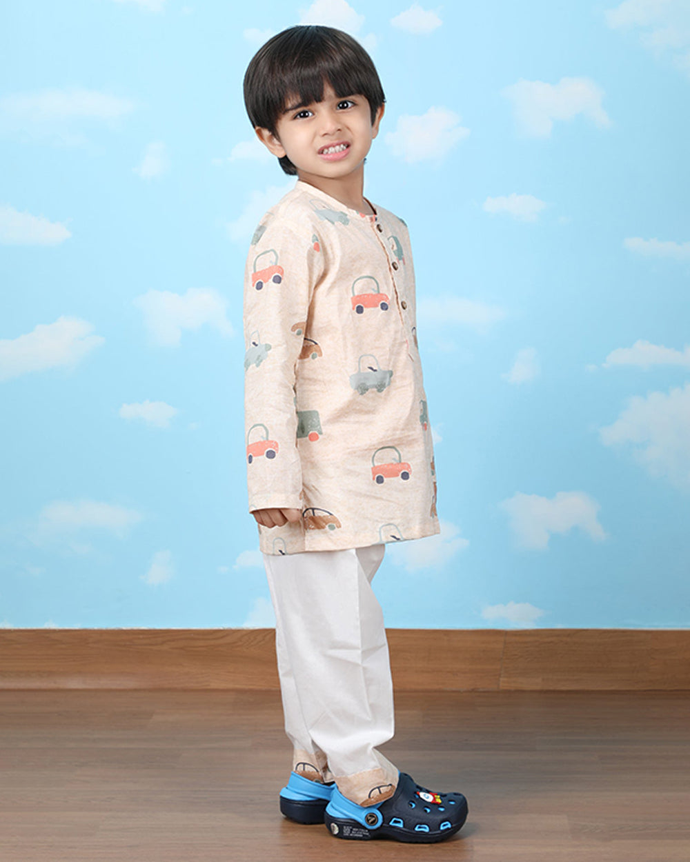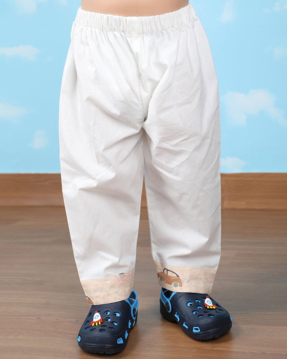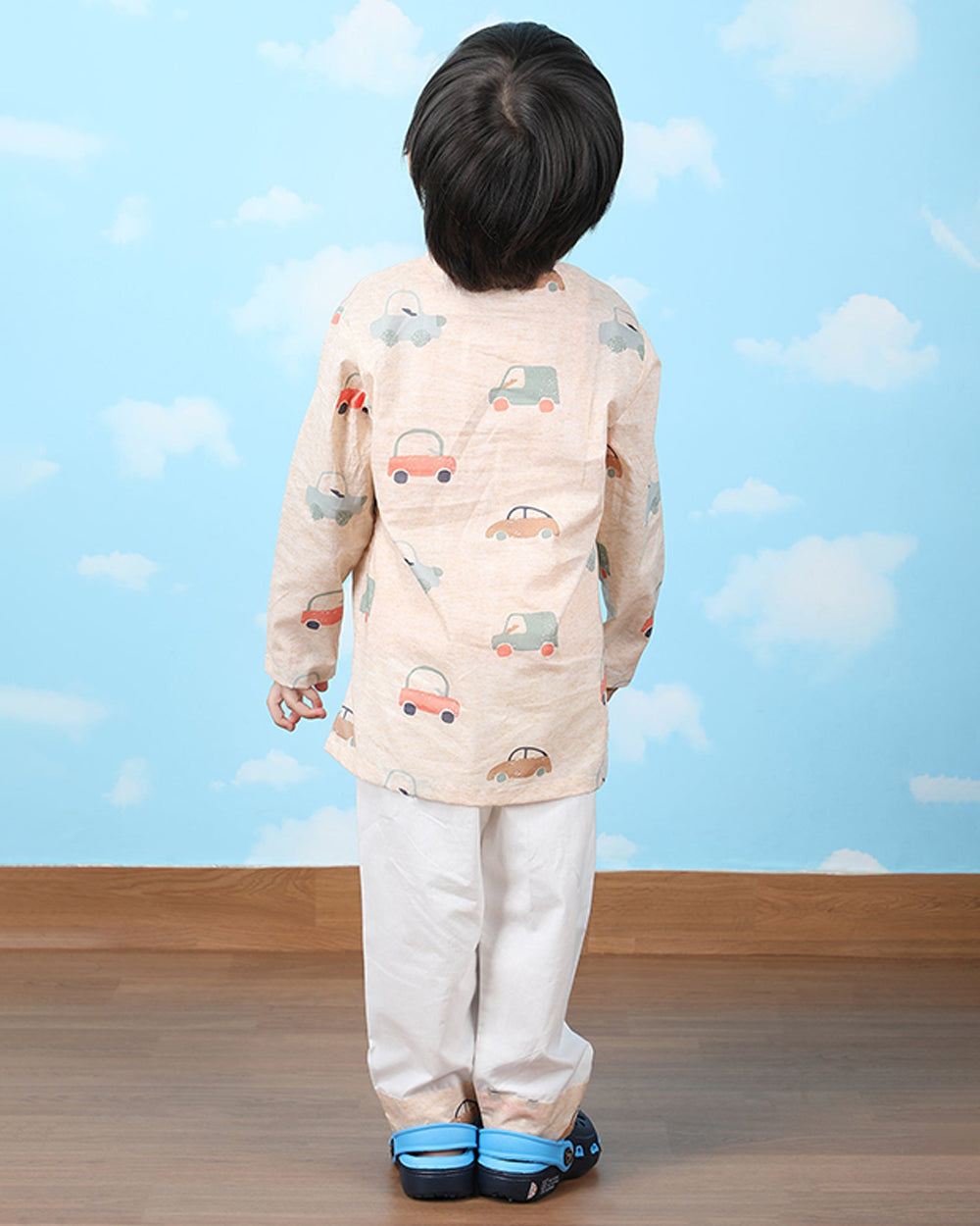 Polka Tots Beige Nightsuit-Car Print-Cotton-For Infants
