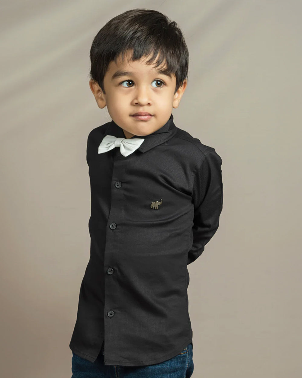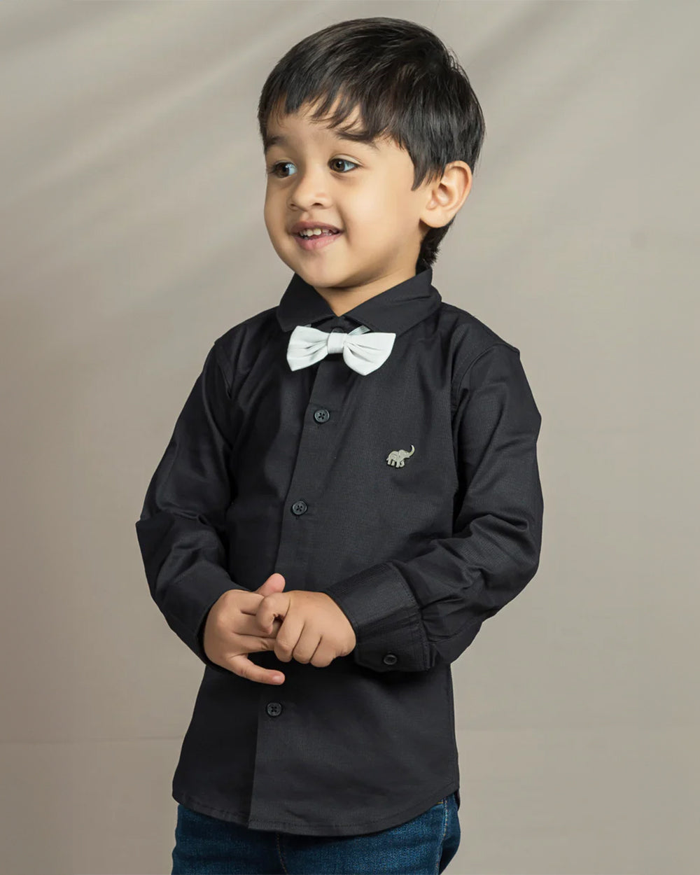 Polka Tots Black Shirt with Bow-Cotton-Solid-For Infants