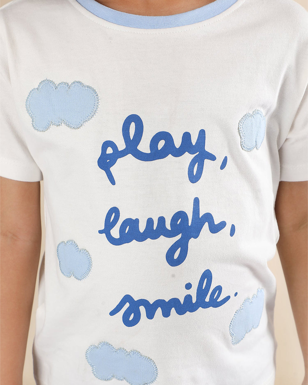 Polka Tots Blue T-shirt & Shorts Set-Laugh & Smile Print-Cotton-For Infants